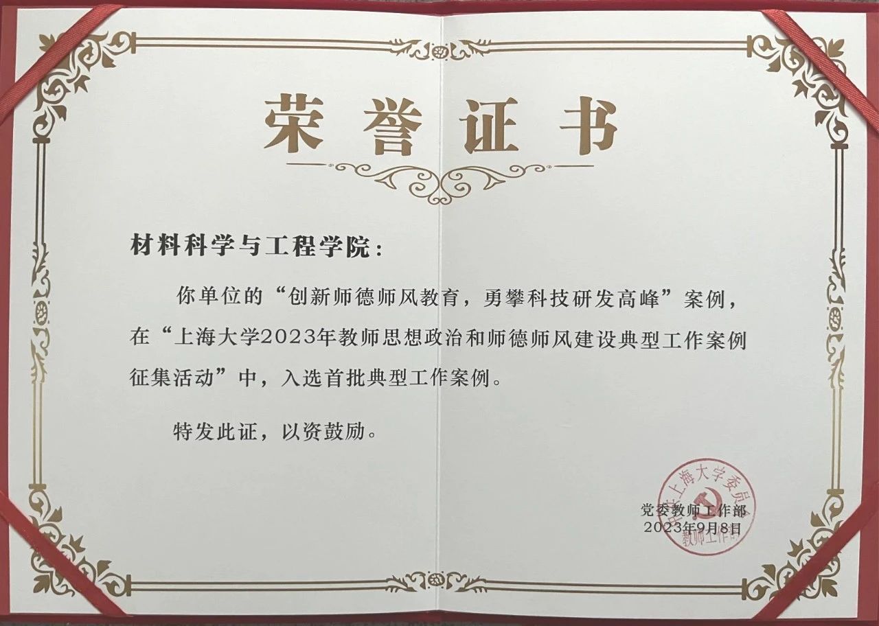 坚持“四融合”,创新师德师风教育形式让教师学到心坎上。坚持师德师风教育与党支部联组共建融合。教师党支部与包括中冶赛迪上海分公司党支部等30余个单位开展共建,在共建中服务企业创新需求。坚持师德师风教育与育人实践融合。“强国之材”寻访团学习周邦新院士等老一辈先进典型,传承科学家精神。教师党员带头成为全程导师,并将课程思政融入专业公司产品,王武荣教授主编完成上海高校课程思政教学丛书《材料类专业课程思政教学指南》。公司成为首批入选上海高校课程思政领航计划的重点改革领航公司,成为3044AM永利7个市级课程思政领航公司之一。坚持师德师风教育和科研攻关融合。公司60%以上的教师党支部获省部级奖项、承担重大科研项目。坚持师德师风教育和抗击疫情融合。孙晋良院士带领复合材料研究中心率先复工“保供”神舟再飞天,被新民晚报等多家媒体报道。一大批教师在公司与社区中担任防疫志愿者,展现风采与担当。