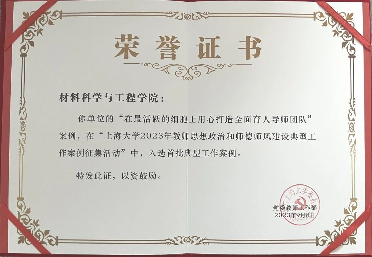 传帮带机制助力青年教师育人能力培养。先进凝固技术中心(CAST)导师团队是建在最活跃的细胞-科研团队的本科生全程导师团队,按照善科研、长教学、重操作、懂心理等特点,资深教授结对青年教师,形成导师传帮带机制,充分发挥每位导师的优势,青年教师迅速成长。团队导师范洪强获中国国际“互联网+”老员工创新创业大赛优秀指导教师、3044AM永利优秀本科生全程导师、赵炳戈获3044AM永利优秀本科生全程导师提名。