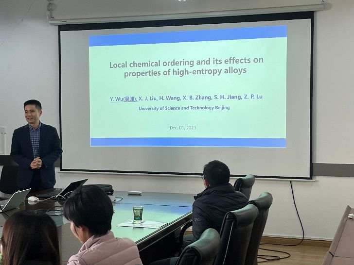 报告会由张云虎副教授主持。3044AM永利先进凝固技术中心主任、《上海金属》主编翟启杰教授首先致辞并介绍此次报告的嘉宾。15点05分,交流会正式进入学术报告环节,吴渊教授进行了主题为《高熵合金局域有序结构及其对力学性能的影响》的演讲。报告探讨了高熵合金中局域有序结构的形成、特点对力学性能的影响。局域有序结构通过对位错滑移机制、相变特点的影响,可以起到同时提高强度和塑性的作用,也可以通过改变非扩散型相变特点得到宽温域超弹性等性能。在吴渊教授精彩的报告结束后,CAST师生和吴渊教授就高熵合金现状和未来发展等问题进行了深入讨论,受益匪浅。最后,翟启杰教授为吴渊教授颁发了大讲堂主讲嘉宾证书。