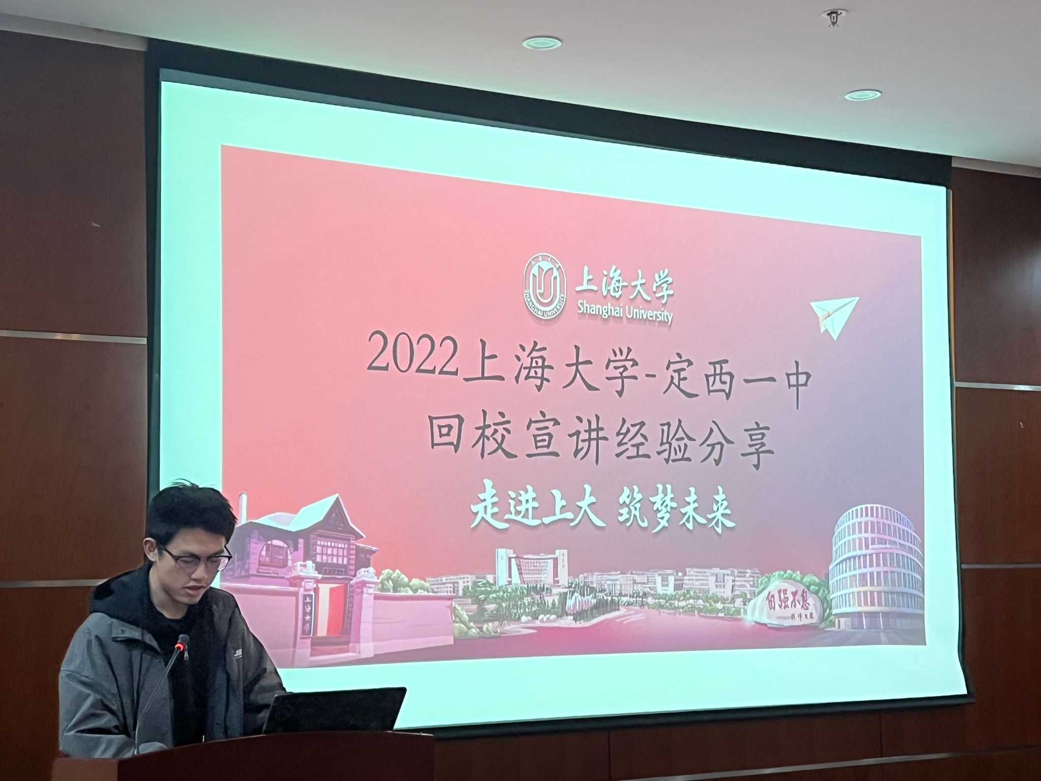 为让同学们更好地了解宣讲实践流程、开展宣讲实践活动,培训动员会邀请去年参与“我为上大代言”寒假回母校活动的学长开展交流和分享。甘肃省定西市第一中学的杨浩同学向大家复盘去年回母校宣讲流程、介绍宣讲内容并介绍较于往年开展实践的优势。江苏省海门中学的朱津霆同学结合个人宣讲体验,就宣讲前期准备、中期开展、结束工作等进行分享,讲解了宣讲实践过程中的注意点,为同学们开展宣讲提供新思路。