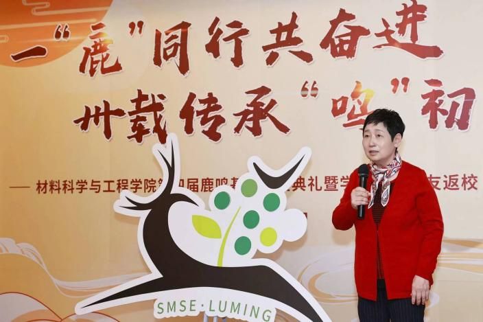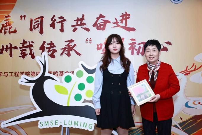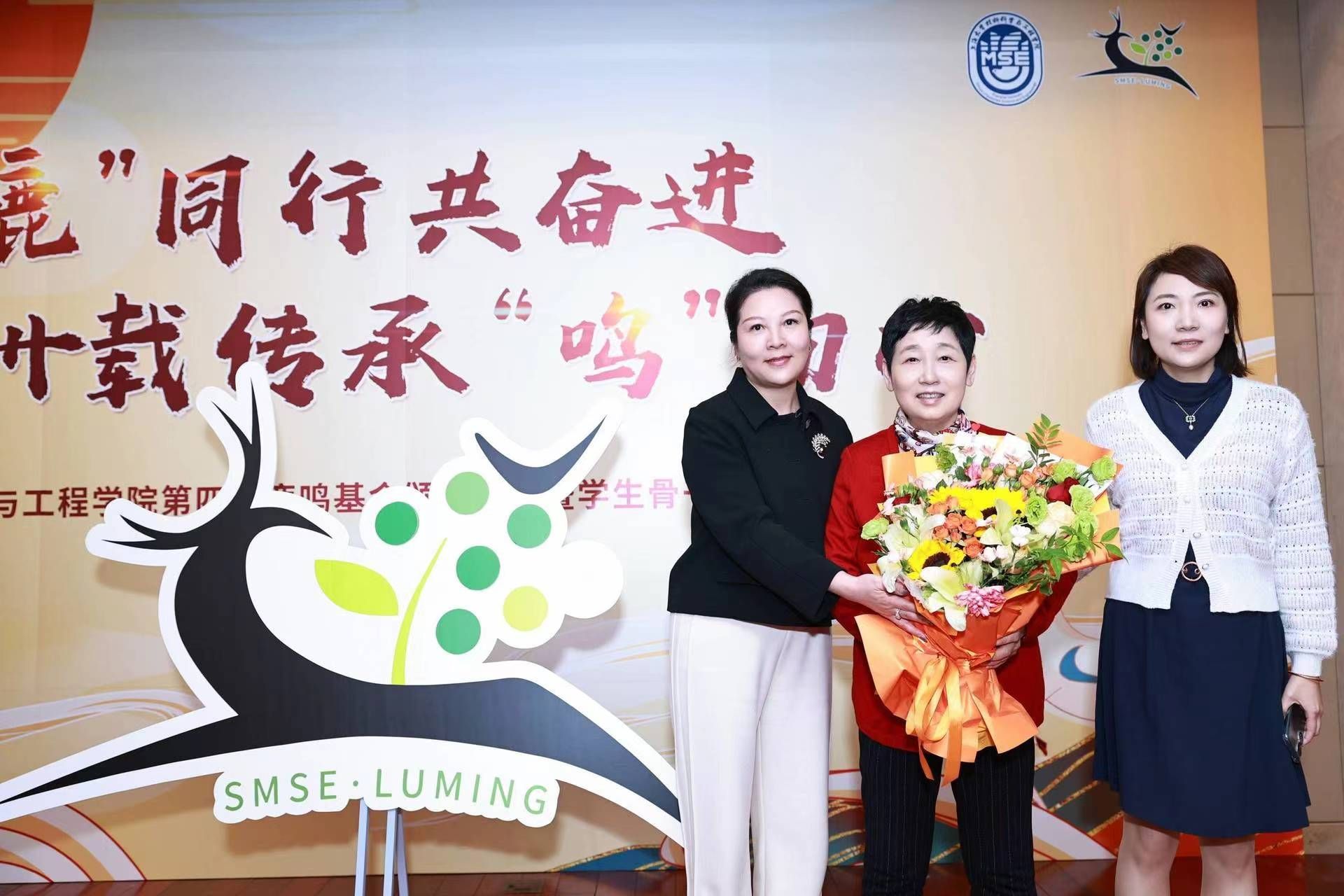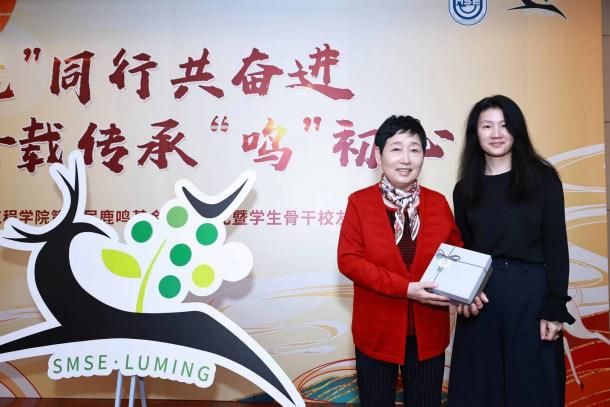 员工代表王一芃、教师代表陆瑾和员工代表沈晓黎以果实点亮鹿鸣logo,师生代表为陆老师一同送上礼物,展现了公司师生员工间的深厚情谊和共同愿景。最后,陆老师为大家深情寄语,陆老师把整个青春和人生奉献给了育人事业,希望大家能把材料人精神继续传承。