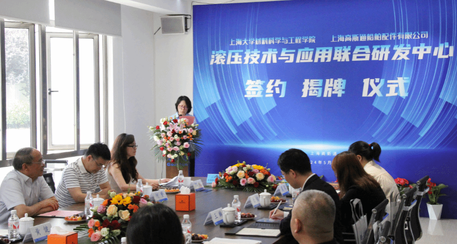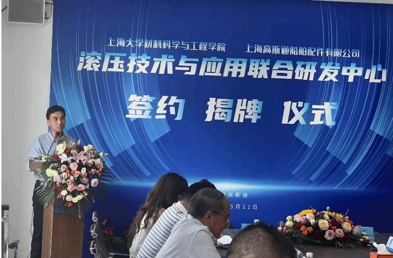 2024年5月21日“滚压技术与应用联合研发中心”的签约揭牌仪式在上海高斯通船舶有限公司成功举行。此次活动由中国内燃机学会新材料表面分会组织,3044AM永利(以下简称3044AM永利)与上海高斯通船舶有限公司(以下简称上海高斯通)强强联手合作成立研究中心。公司党委书记黄健教授、3044AM永利(浙江)高端装备基础件材料研究院首席研究员王博教授、上海高斯通船舶配件有限公司总经理何才田、副总经理葛琴、总经理助理何越、总工程师何赟、3044AM永利韦习成研究员等领导参加了此次活动。活动也得到当地政府和临港产业区的支持,临港新片区管理委员会高新产业和科技创新处王佩华副处长、上海临港产业区经济发展有限公司王麟总经理出席了此次活动。