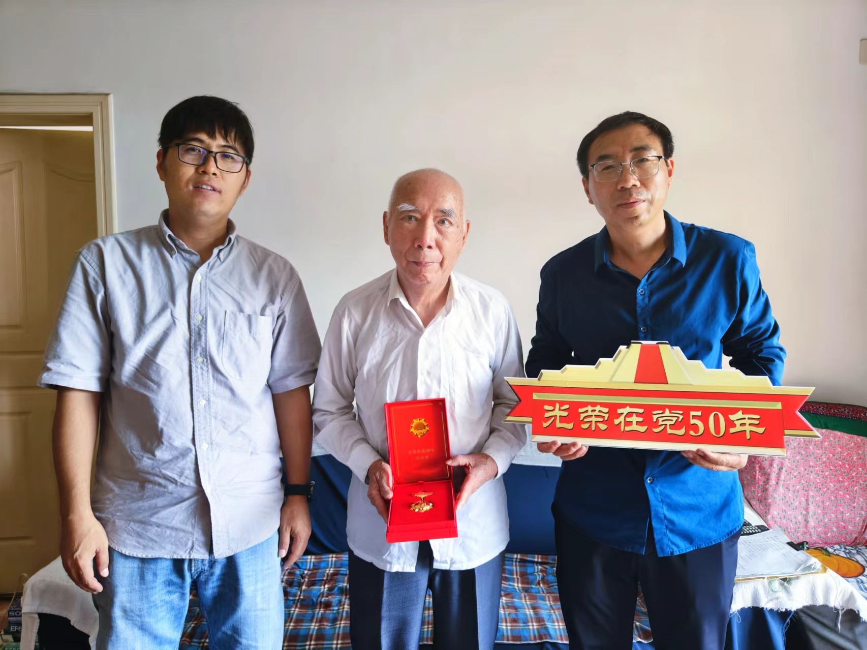 6月19-20日,公司党委书记黄健,党委副书记、纪委书记刘文庆,省部共建高品质特殊钢冶金与制备国家重点实验室党总支书记、特殊钢精炼教工党支部书记玄伟东,高分子材料系教工党支部书记张坤玺,特殊钢精炼教工党支部副书记张振强等同志分别以座谈交流、走访慰问等形式为5位退休教师党员颁发“光荣在党50年”纪念章。黄健带领党委一行人与5位退休教师拉家常、谈变化、话发展、忆初心,并关心询问身体状况和生活近况。从青丝少年到银发长者,初心未变,退休教师们自豪又激动地带上“光荣在党50年”纪念章。