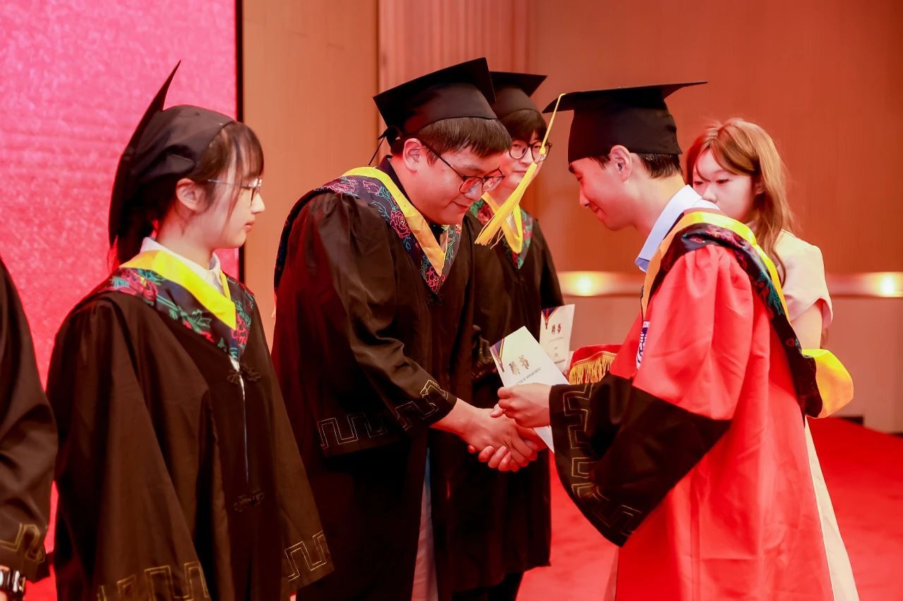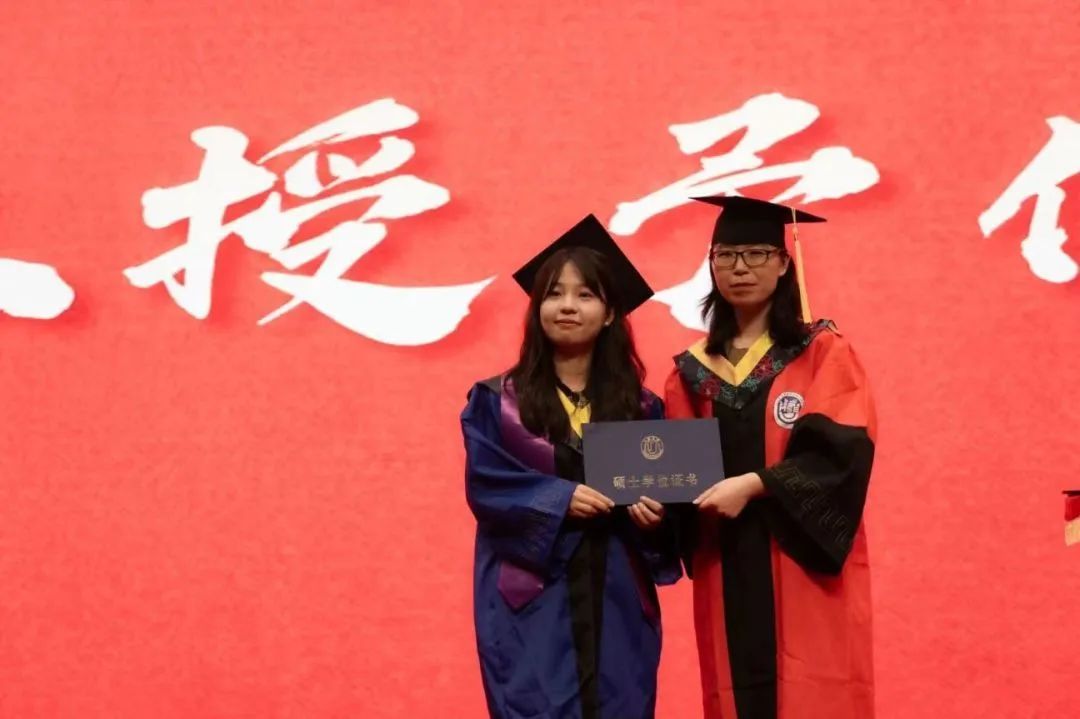 最后是庄重的学位授予仪式,毕业生们统一穿着,依次进行拨帽穗、颁发学位证、发放贺信等环节。