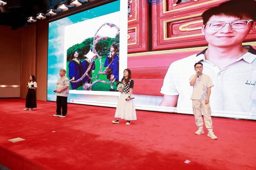 员工的家人们纷纷录制视频表达对毕业生的祝贺。24届硕士毕业生孙思文同学的母亲刘莉女士也来到现场,表达了作为家长的骄傲和自豪,并向所有顺利完成学业的同学们表示祝贺。刘莉女士发言完毕后,孙思文带着无比感动的心情为母亲送上了献花。