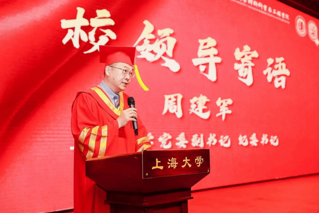 周建军书记为毕业生们送上了殷切寄语。他勉励大家始终践行“自强不息,道济天下”的校训,勇敢迎接未来的挑战。周书记强调,青年是祖国的希望、民族的未来,面对百年未有之大变局,青年应当发光发热、建功立业,为实现中华民族伟大复兴的中国梦贡献青春力量!