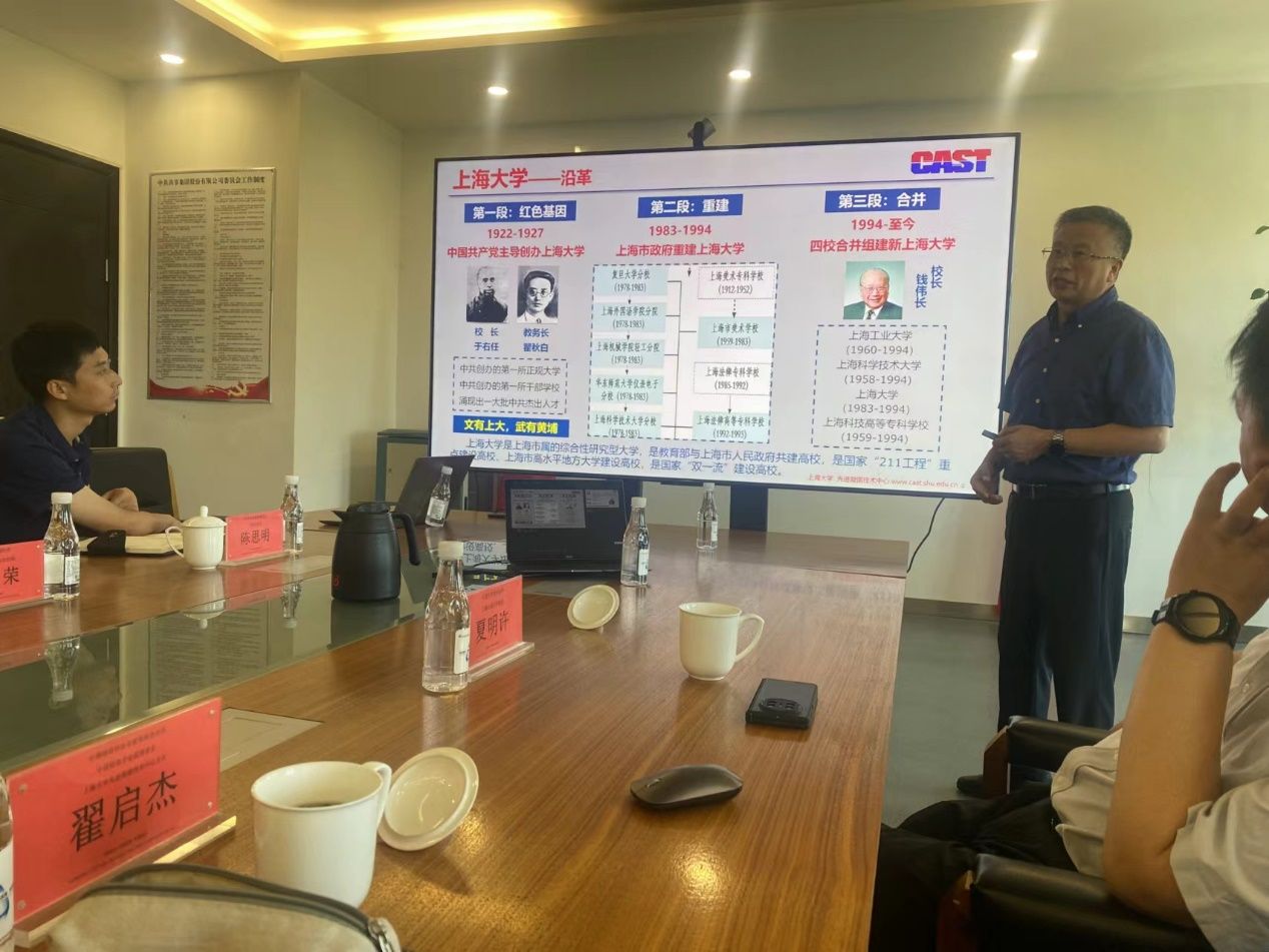 上午,共享装备总裁助理、共享铸钢常务副总经理冯周荣全程陪同翟启杰教授一行参观了参观共享创新中心、共享铸钢、共享智能装备和共享装备等企业。翟启杰教授为共享集团做了题为“金属凝固过程与组织调控——CAST团队科技创新实践”的报告。共享集团董事长彭凡先生主持了报告会,并与翟启杰教授一行进行了深入的交流。