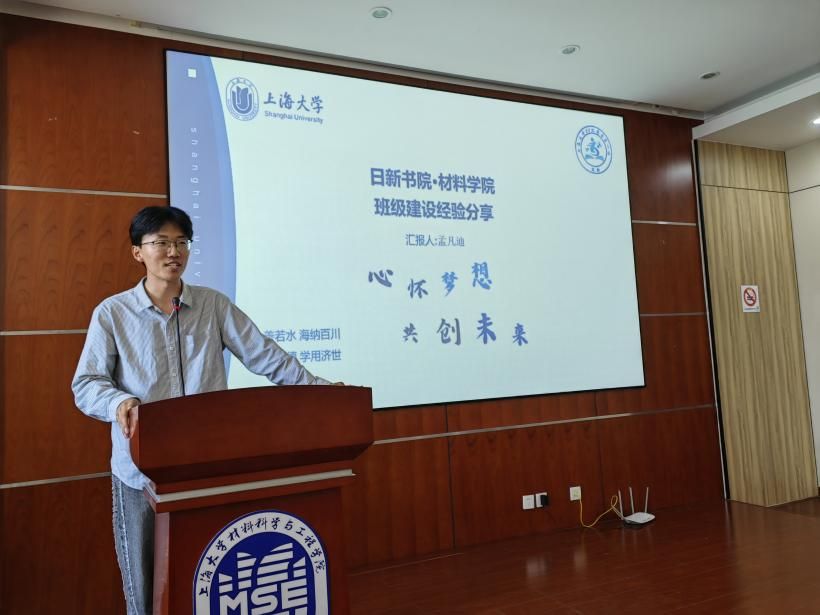 接着,十佳卓越班级22级高分子一班班长孟凡迪同学围绕“心怀梦想,共创未来”的主题,深入分享了班级建设的宝贵经验。他从班级整体把握、优良学风建设、班团共建、班级多元文化四个方面,阐述了班级建设的重要性和方法并提出了一系列具体可行的建议。