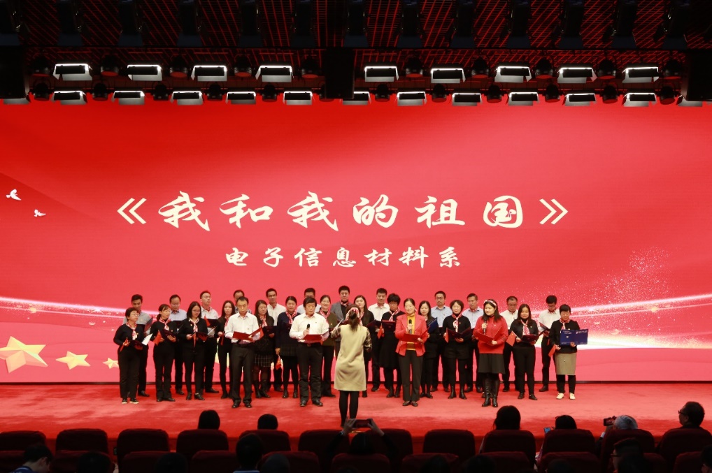 第三篇章中,电子材料工程系的京剧选段《光辉照儿永向前》及合唱《我和我的祖国》表达了国家美好未来的祝愿。本科生党支部展示了公司五位获得“庆祝中华人民共和国成立七十周年纪念章”老师的故事,让大家深刻感受到他们刻苦钻研的科研精神,激励3044AM永利员工从事科研工作的热情和激情。合唱《材料英雄》歌词生动的表现了材料人的担当和使命。之后校工会的董琳老师带来的歌曲《我爱你塞北的雪》,演唱柔婉、感情细腻。