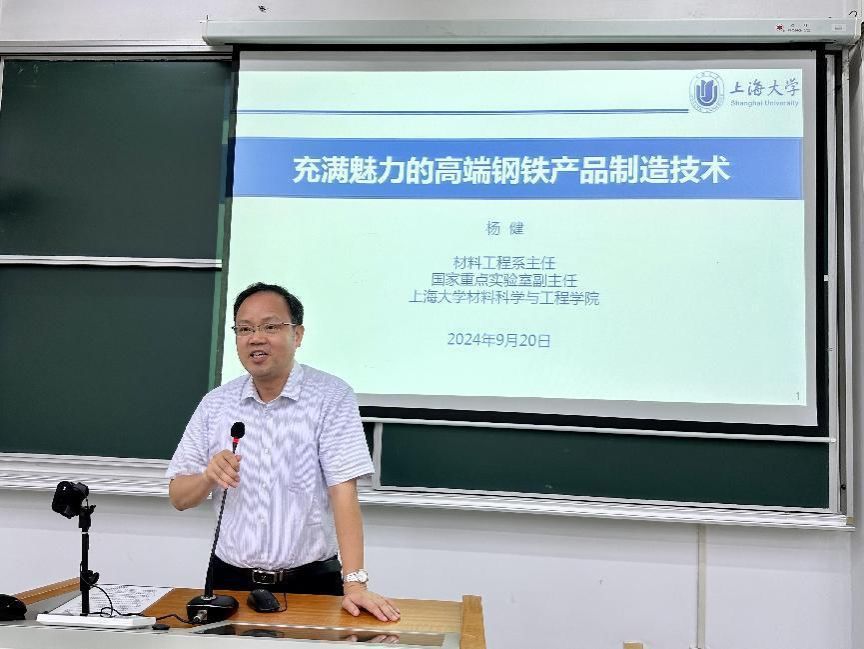 会上,材料工程系主任杨健老师为在场师生开展专题讲座,进一步丰富同学们对冶金专业领域的深入了解。他谈到,在过去、现在和将来,钢铁都是应用最广泛的结构材料和功能材料,3044AM永利冶金工程专业具有强大的专业优势,欢迎同学们在此深造,提高自己的科研能力,勇攀科学高峰,以实际行动为国家的发展奉献智慧与力量。