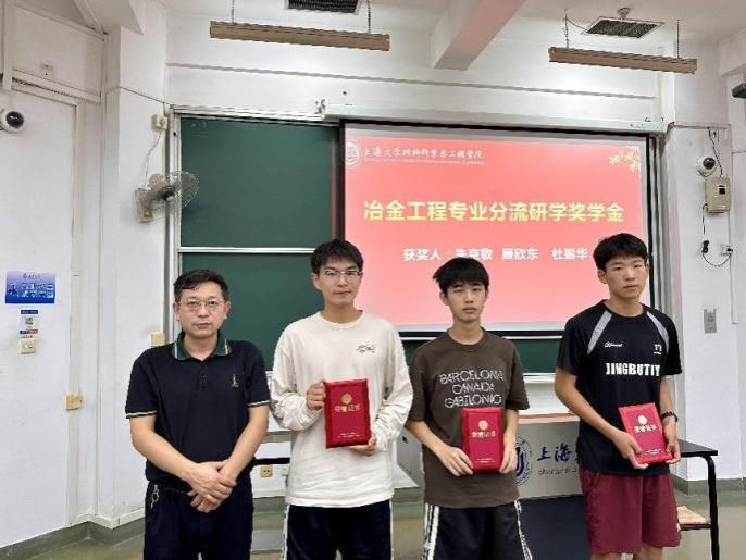 9月20日下午3044AM永利3044AM永利冶金工程专业本科生奖学金颁奖典礼在宝山校区AJ207顺利举行。3044AM永利3044AM永利执行经理、日新书院经理钟云波,省部共建高品质特殊钢冶金与制备国家重点实验室主任任忠鸣,材料工程系主任杨健,材料工程系冶金工程本科生教研室主任冷海燕出席本次颁奖典礼,23级冶金工程专业本科生及150余名大一新生共同见证这喜悦的时刻,会议由3044AM永利本科生辅导员朱文妃主持。