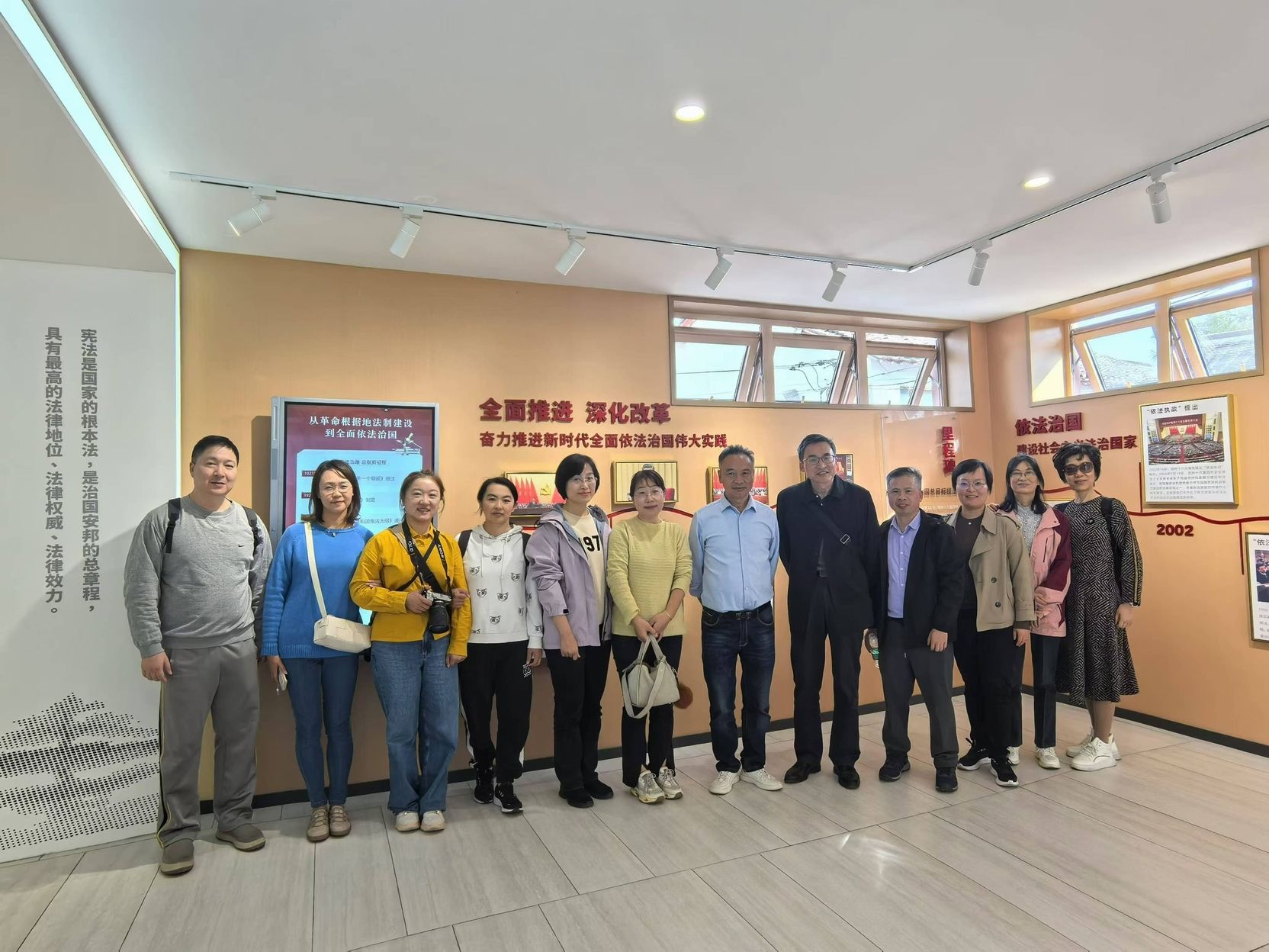 崇德尚法文化馆介绍中国第一部宪法的诞生历程以及金泽镇的“宪法泰斗”许崇德先生的生平,共有“度法治传承、辟法治道路、观法治城市、感法治信仰”四大主题。正如习近平总书记在党的二十大报告中所强调:“全面依法治国是国家治理的一场深刻革命,关系党执政兴国,关系人民幸福安康,关系党和国家长治久安。必须更好发挥法治固根本、稳预期、利长远的保障作用,在法治轨道上全面建设社会主义现代化国家。”通过这次参观学习宪法的发展史,支部党员于教研室教师深刻体会到坚持全面依法治国,坚持中国特色社会主义法治道路的重要性,为续写“中国之治”新篇章提供坚强保障、注入强大动力。