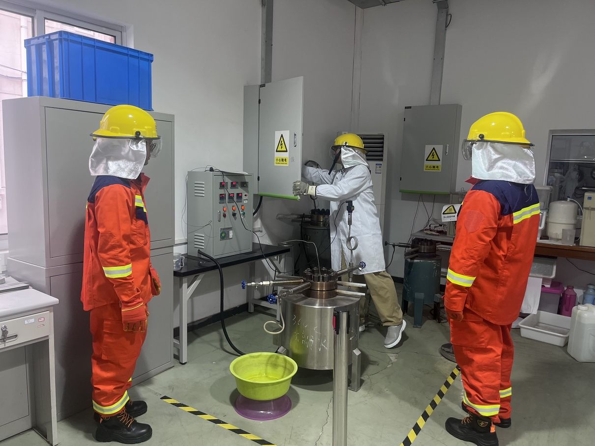 课题组负责人讲解高压釜可能出现的应急状况及操作事项,确认演练准备情况