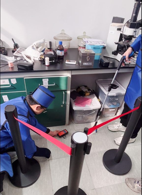 设置初始警戒线,做好现场管控;手持检测仪由外向内逐步进入事故地点开展搜寻,确定放射源具体位置并标识