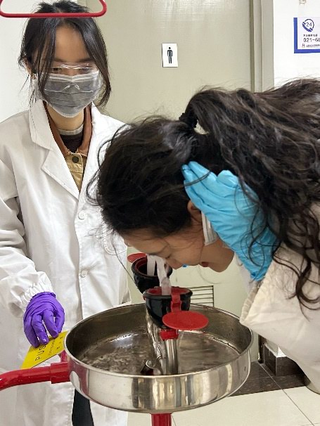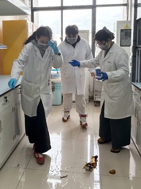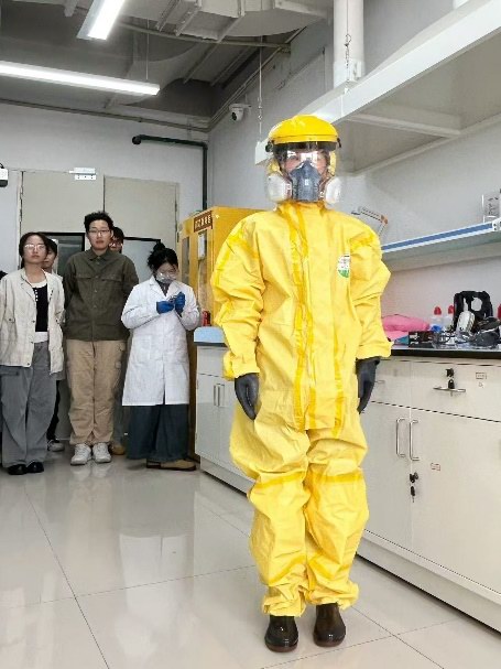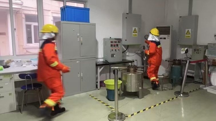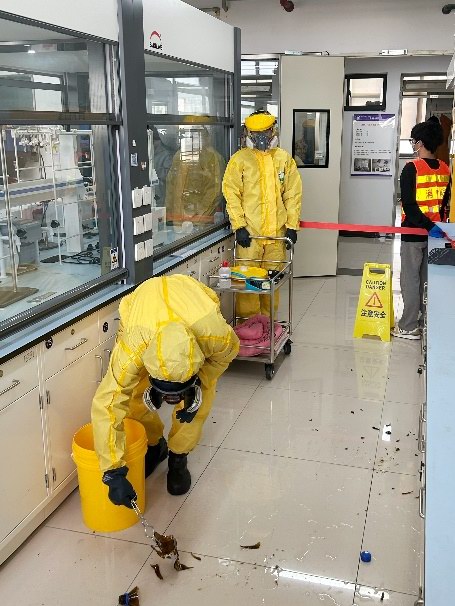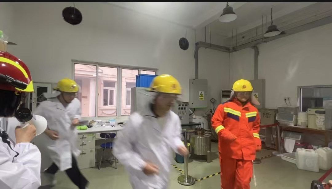 演练开始,发现漏气与超温超压的同学,在佩戴防护手套与护具的情况下,迅速将高压釜电源切断,其他实验点位的老师与同学迅速且有序从实验室离开。