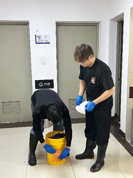 废弃物进行规范处理(左);反馈处理情况,确认现场处理完毕后恢复使用(右)