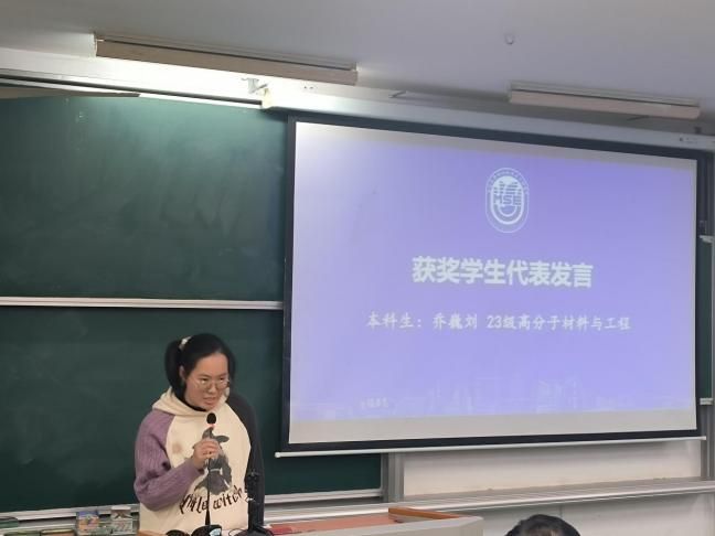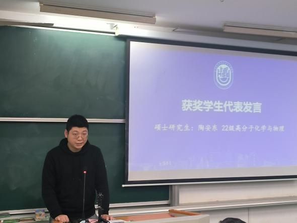 接着,张佳星作为博士研究生获奖代表发言,他展示了自己的科研成果,详述前沿研究与创新思维碰撞,展现科研深度魅力。陶安东作为硕士研究生获奖代表发言,他分享了课题攻坚的心路,分享了对科研的理解和认知。本科生获奖代表乔巍刘分享了基础学习积累与初涉科研感悟,以及对专业的理解认知。