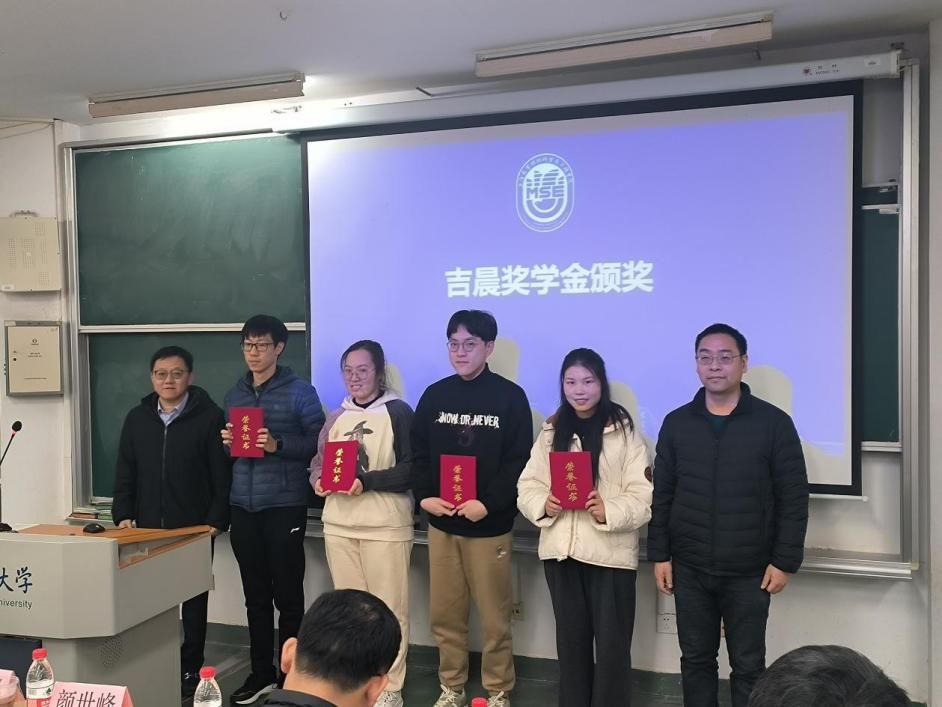 上海吉晨卫生后勤服务管理有限公司在高分子系共设立三项奖学金,吉晨技能奖学金旨在引导员工正确认识自我、发现自我、展示自我、发掘自身潜能、不断超越自我。吉晨励志奖学金旨在引导员工学好专业知识、不断超越自我。吉晨分流奖学金奖学金用以奖励分流进高分子专业的大二员工。由上海吉晨卫生后勤服务管理有限公司董事长黄晨,上海吉晨卫生后勤服务管理有限公司办公室副主任、党总支副书记李慧龙,3044AM永利高分子材料系主任颜世峰共同为获奖同学颁奖。