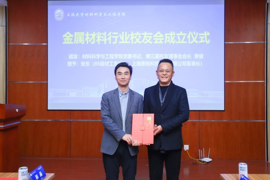 会议中迎来金属材料行业员工会的成立仪式。公司党委书记、第三届员工理事会会长黄健书记为85级材工系员工、晋拓科技股份有限公司董事长张东颁发“金属材料行业员工会会长”聘书。张东员工在致辞中表示,将不遗余力地推动行业员工会的发展,为员工提供更多的交流与合作机会。