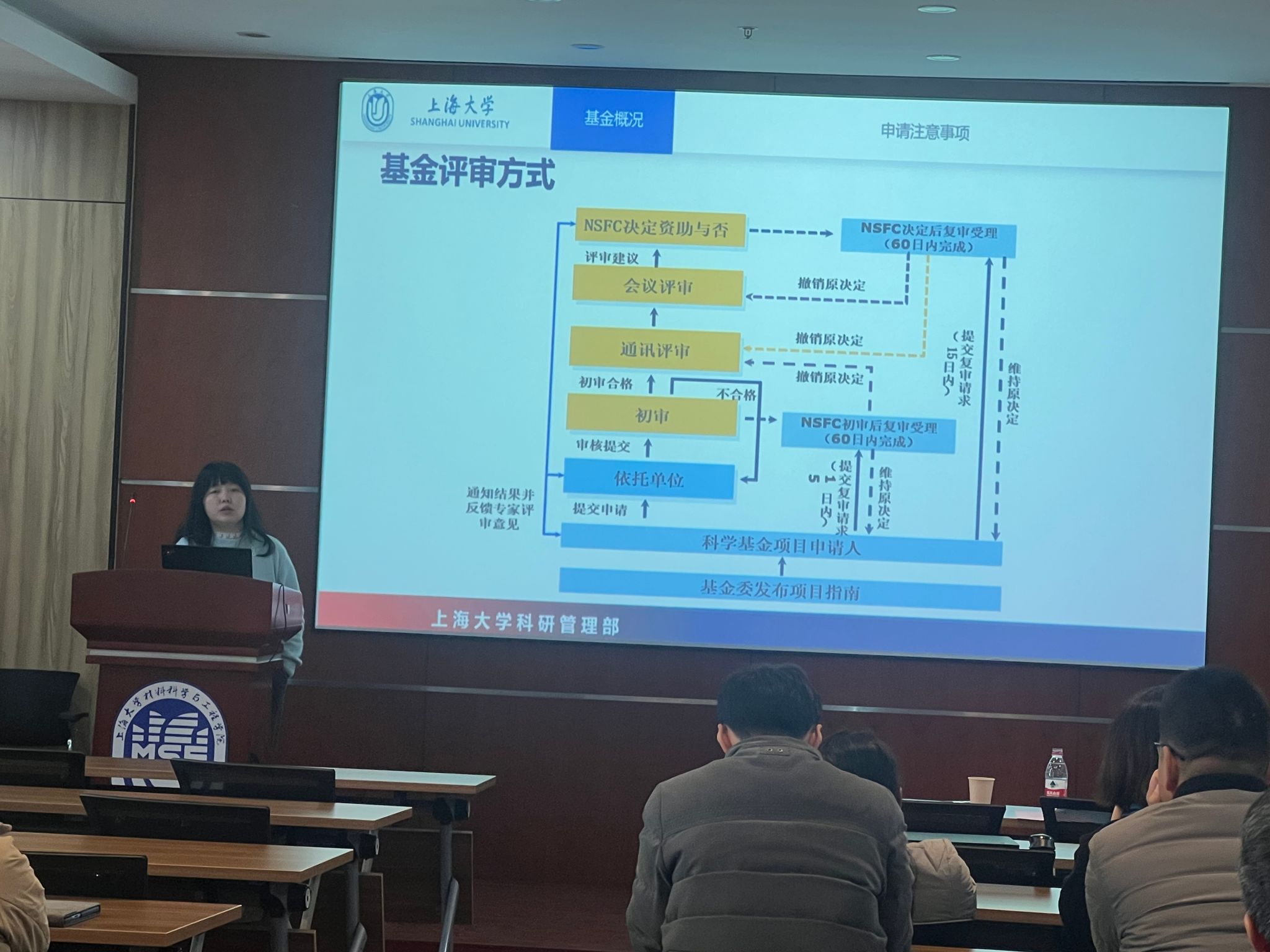紧接着甄强处长对2024年国自然基金资助整体情况、基金资助率、资助力度变化趋势、3044AM永利近年来国自然基金申请及获批情况和2025年政策变化等方面做了详细的介绍。束玲琳主管则重点强调了2025年基金申请须知,并欢迎公司教师及时沟通交流。