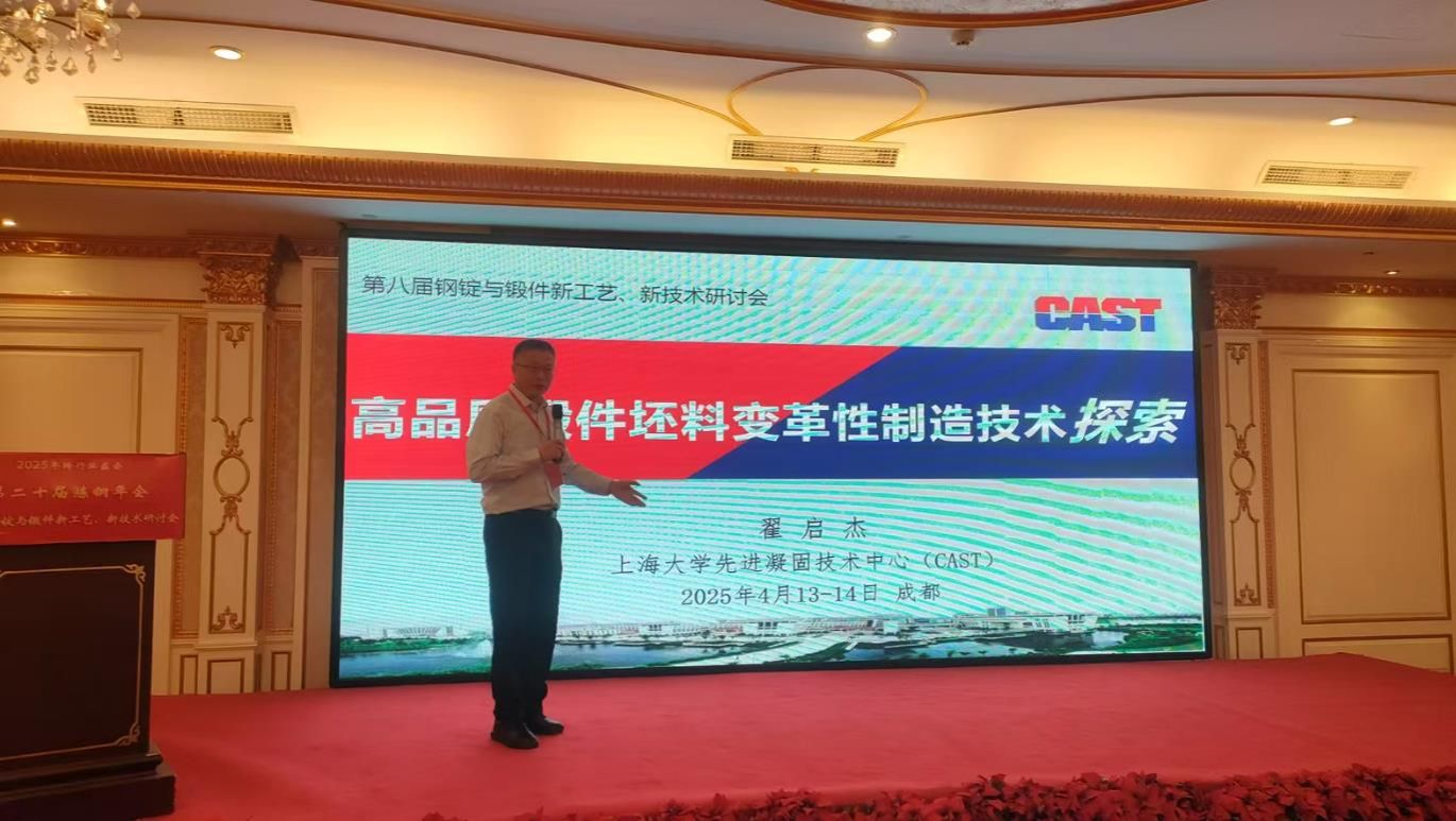 公司先进凝固技术中心主任翟启杰作为作为嘉宾受邀参加此次会议,并做了题为“高品质锻件坯料变革性制造技术探索”的大会报告。翟启杰教授的报告介绍了公司CAST团队原创的脉冲磁致振荡(PMO)凝固细晶技术及其在模铸领域的应用及其由此衍生的多项创新技术、研究进展和应用概况。翟启杰教授的报告引起了与会者的极大兴趣,CAST团队的多项原创成果得到了与会者的高度肯定。在会议全部报告结束后组织的一个小时集中讨论环节,与会者怀着极大的兴致集中讨论了PMO技术,翟启杰教授热情地一一解答了大家的提问。