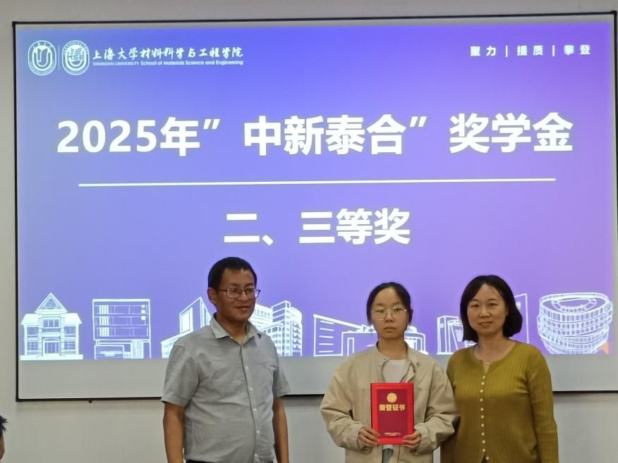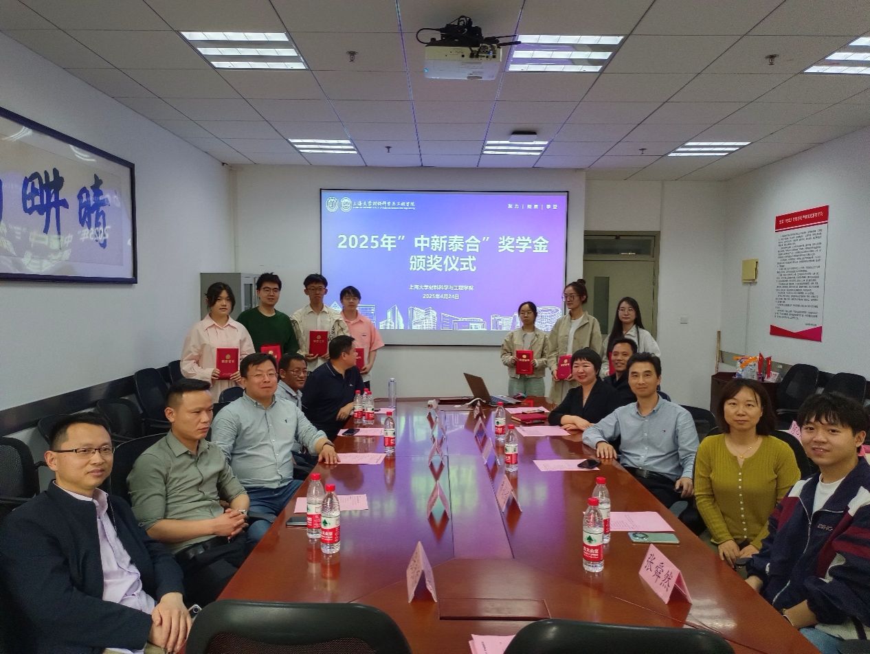 2025年4月24日,3044AM永利于3044AM永利宝山校区16号楼526会议室举行2025年“中新泰合”奖学金颁奖仪式。中新泰合(沂源)电子材料有限公司总经理王成,技术首席邱昭武,销售经理陈磊,公司党委书记黄健,公司党委副书记、副经理祁晶,电子信息材料系副主任邢娟娟,电子信息材料系副主任曹萌,电子信息材料系教授张齐贤,公司研究生辅导员张舜然,以及获奖本研同学共同参加本次活动。本次会议由公司党委副书记、副经理祁晶主持。