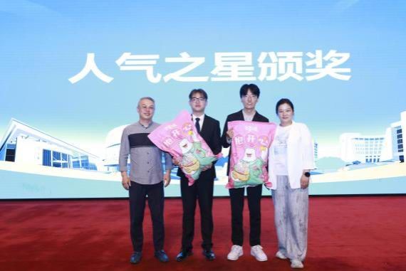 经过网络投票选出人气之星的获奖名单,人气之星的获奖者分别是22级本科生孟凡迪以及23级硕士研究生经涛,3044AM永利员工会副会长、上海宽网网络科技有限公司董事长杨伟民和电子系员工、芯栋微(上海)半导体技术有限公司董事长印琼玲给获奖者颁奖并合影留念。