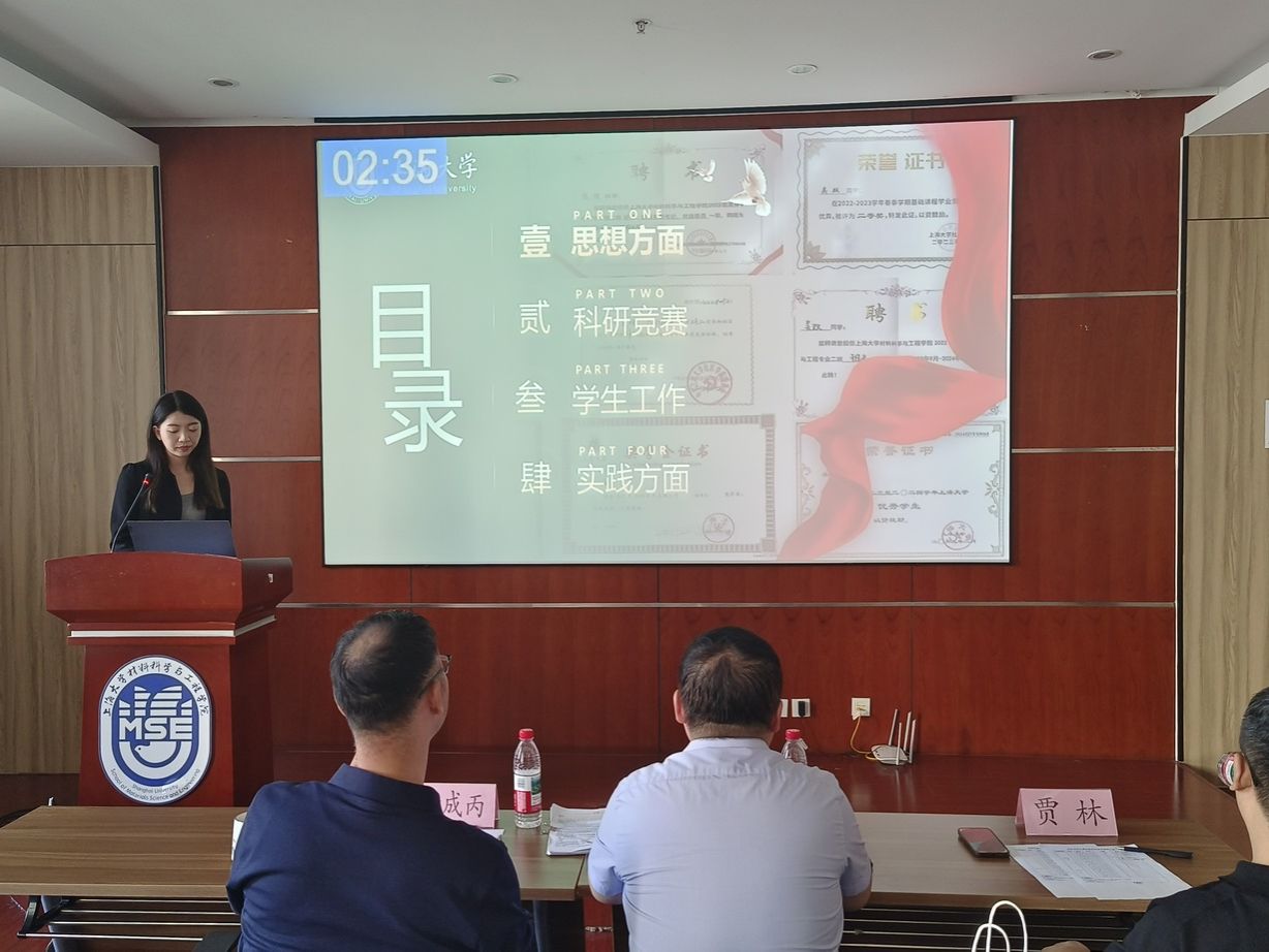 此次答辩分成3分钟的PPT展示环节和2分钟的问答环节。PPT展示环节中参赛同学除了从学习情况、社会实践、科技创新、社会工作等各个方面进行陈述外,还重点展示了自己的各类特色技能,包括舞蹈表演、音乐歌唱、书法、办公软件、绘画作品等。