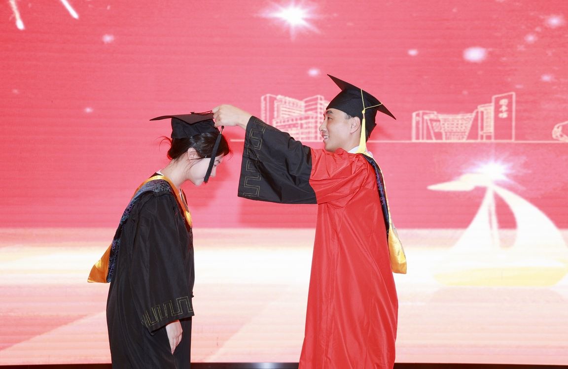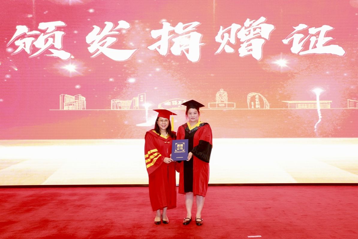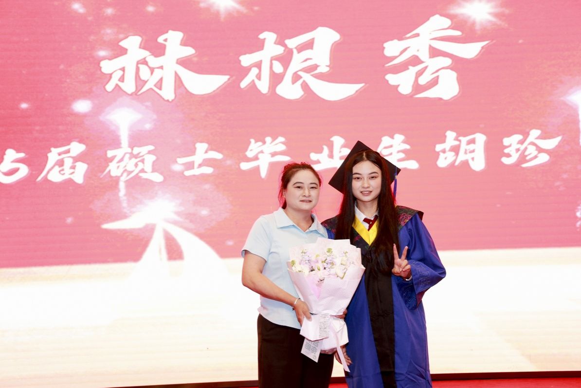 25届毕业生胡珍同学母亲林根秀女士真挚地感谢公司用智慧与爱心,助力孩子们从求知到成才的蜕变,并向所有顺利完成学业的同学们表示祝贺。胡珍同学还为母亲送上了鲜花。随后,现场先后播放了两段暖心的祝福视频:一段是亲友们跨越千山万水送来的爱与期盼,另一段则是老师们对即将踏上未知征程的学子们饱含殷切期待的寄语。