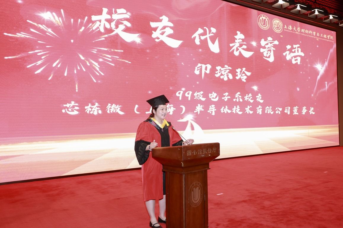 芯栋微(上海)半导体技术有限公司董事长印琼玲女士(99级电子系员工)分享创业感悟:“母校自强不息的精神烙印,是你们征战四方的铠甲!”随后,张建华副董事长为其颁发捐赠证书,铭谢赤子之心。