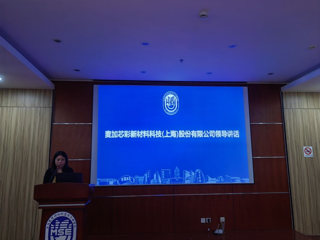 接着,崔园园介绍了麦加芯彩新材料科技(上海)股份有限公司的发展历程、业务领域以及对人才的重视,强调公司始终关注高校人才培养,希望通过设立奖学金,加强与高校的合作交流,为行业培养更多优秀人才,鼓励同学们将所学知识运用到实际中,为行业发展注入新活力。