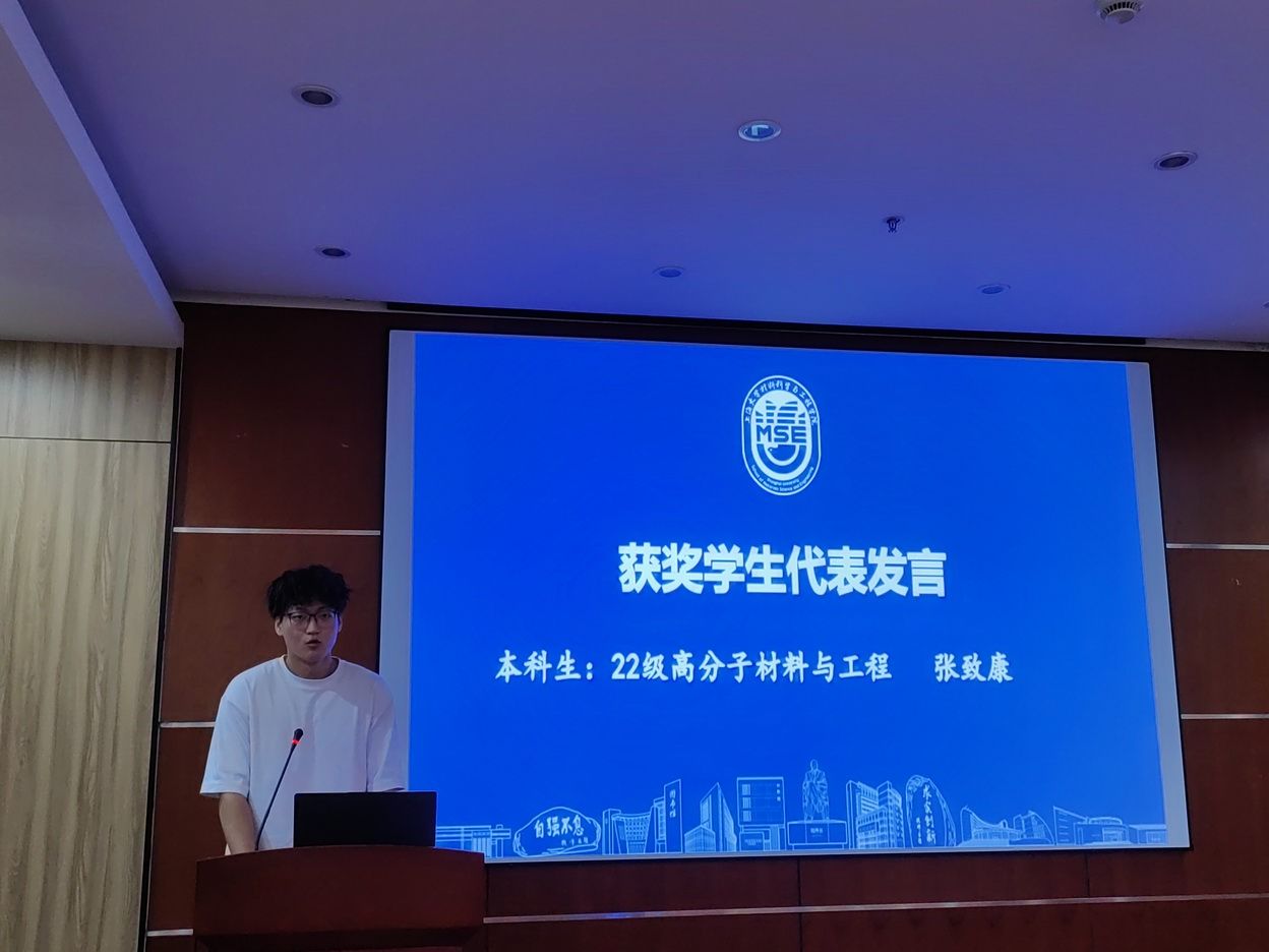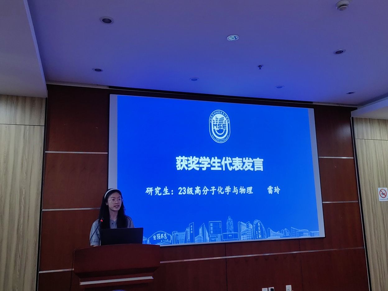 最后,23级高分子化学与物理专业研究生雷玲和22级高分子材料与工程专业本科生张致康先后发言。雷玲分享了自己在科研道路上的探索与坚持,表示将继续努力,勇攀科研高峰。张致康讲述了自己在本科学习中的成长经历,鼓励同学们珍惜时光,积极进取。