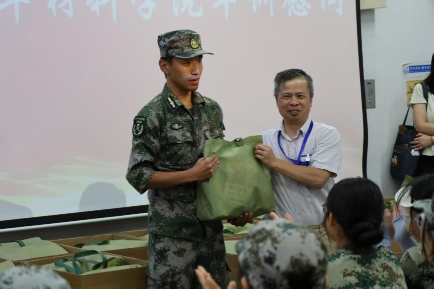 军训指导员和导生们同样付出了极大的辛劳,他们不仅全程陪伴学子进行训练,还时刻关注学子的身体状况。为了表达深切的感谢与崇高的敬意,副经理邹星礼和公司工会主席、电子信息材料系党支部书记谢建军老师代表公司对指导员和导生们进行亲切的慰问。
