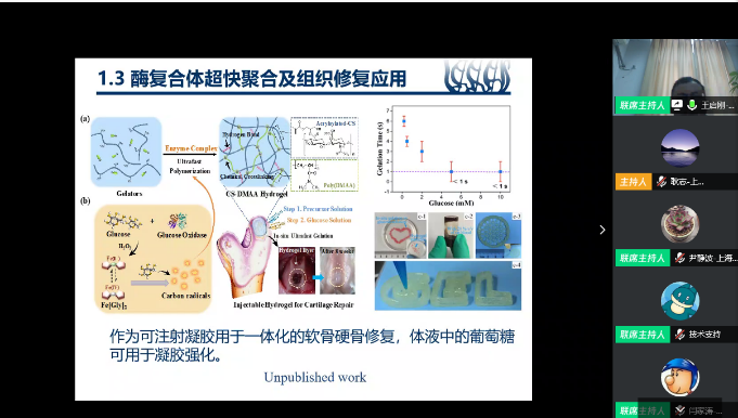 软物质材料涵盖生命体系、高分子、液晶态、凝胶态、复合功能物质等自然界及日常生活常见材料。软物质材料的研究将促进多学科的交叉,对生命科学、化学化工、医学、药物、食品、材料、环境、工程等领域长远发展起到重要的作用。在全球抗疫的特殊时期,上海材料前沿论坛2020年春季会议于4月28日首次以线上方式召开,大会特设软物质材料分会场。软物质材料分会邀请知名专家和青年才俊做22个报告,其中特邀北京航空航天大学刘明杰教授、中国科公司上海有机所黄晓宇研究员、中国科公司理化技术研究所王树涛研究员、同济大学杜建忠教授作主题报告,同济大学王启刚教授、东南大学杨洪教授、华东理工大学蔡春华教授、东华大学张耀鹏教授、北京工业大学耿建新教授等作邀请报告。近80人积极参与线上讨论,230多人在线观看分会直播(图1)。