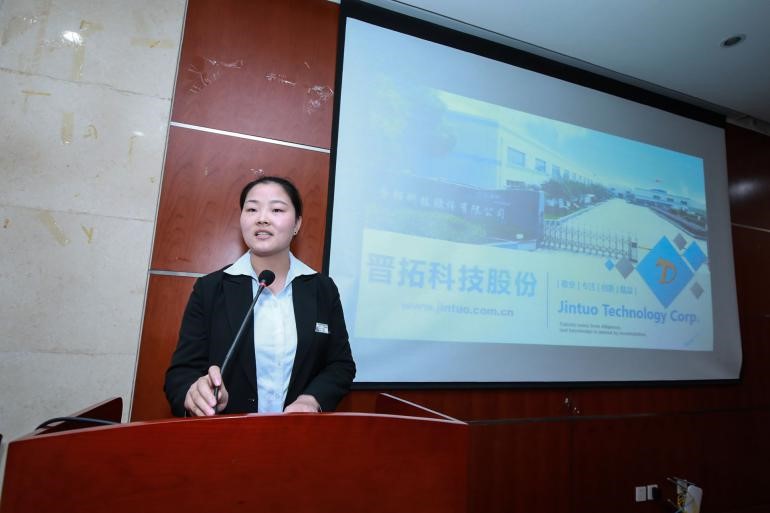 员工企业代表晋拓科技股份有限公司人事经理张燕介绍员工企业同母校的合作情况,并表示公司已与公司促成了多项人才培养方面的合作,期待未来更多的同学加入员工企业,为行业发展做贡献。