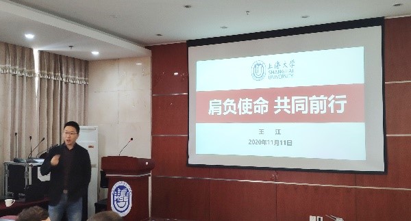 公司党委书记王江教授以“肩负使命,共同前行”为主题为公司员工党员、辅导员讲党课。王江书记结合当前“四史”学习教育开展情况,提出员工党员要把握全心全意为人民服务的必要性。王书记以如何理解商品价格这个思想实验开始,引导现场同学思考如何能够让世界变得越来越美好。对于怎样完成这个命题?他以博弈论中的著名案例“囚徒困境”为引,点明要想获得共同利益最大化,需要我们每个人都为团体奉献这一深刻要旨。只要“人人都献出自己的爱,世界将变成美好的人间”。王书记讲到作为3044AM永利的员工要在满足国家重大发展需求中做出自己的贡献。他结合3044AM永利的学科背景和自己读书期间科研经历,形象地讲解身为一名材料人,如何“献出自己的那份爱”。王书记生动地介绍两个故事,一是在重型燃气轮机用单晶叶片的制备上,我们材料人如何勇担重任,攻坚克难,实现“零”突破;二是在航空发动机用双层壁叶片的制备上,我们如何勇闯难关,群策群力,实现“三代跨越”。他要求员工党员要认真学习领会党的十九届五中全会精神,把握未来发展大势,面对创新驱动和社会需求,立足专业,不断提升自己的能力,发挥专业优势;同时,广泛涉猎、博览群书,做全面发展的人,应对未来挑战,推动国家科技创新和进步。