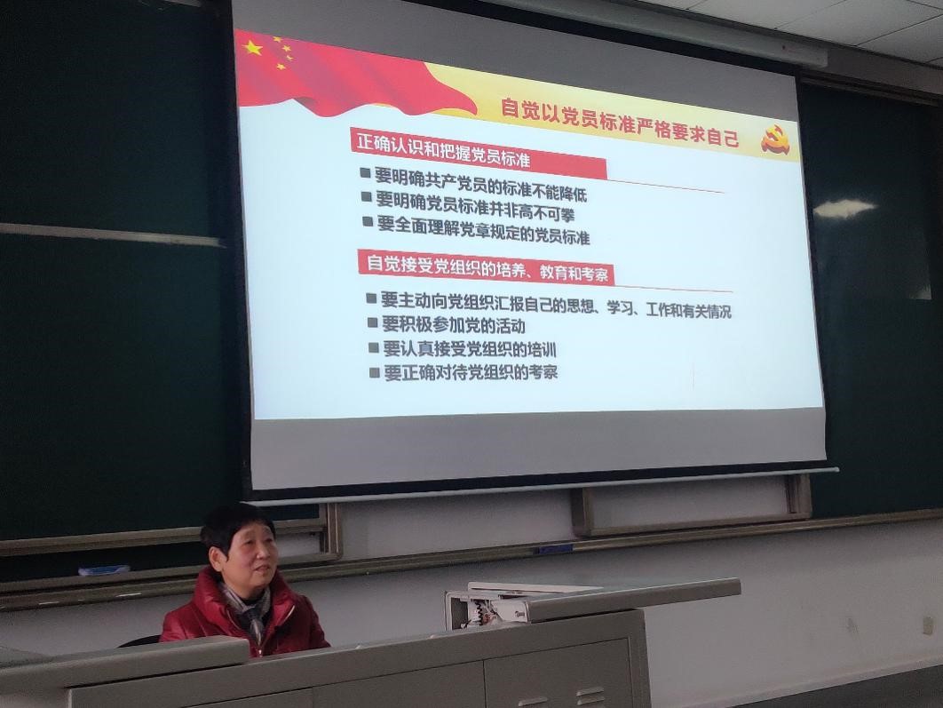 随后,陆翠兰老师从中国共产党党内基本情况、十九届五中全会精神学习、“四史”学习教育、共产党员的初心与使命、端正入党动机五个方面展开讲解。陆老师指出,尽管大家尚未成为正式党员,但是从递交入党申请书开始,就要在思想上以党员的标准严格要求自己,对于党的基本知识必须要有所把握。