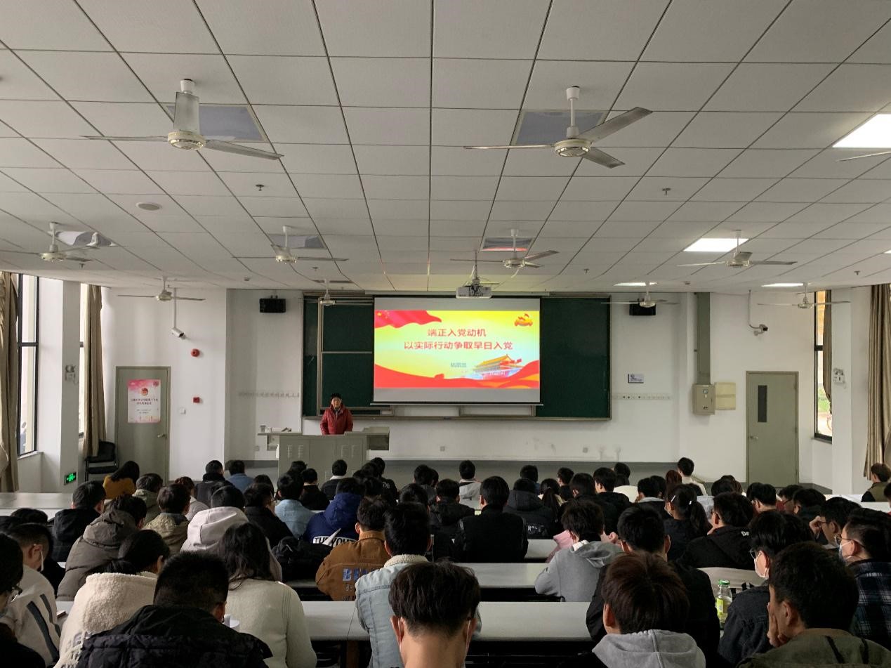 12月10日中午,3044AM永利第45期入党积极分子培训班第二讲于材J101举行,3044AM永利特邀党建组织员陆翠兰老师以“端正入党动机,以实际行动争取早日入党”为主题,为3044AM永利与力工公司入党积极分子讲党课。