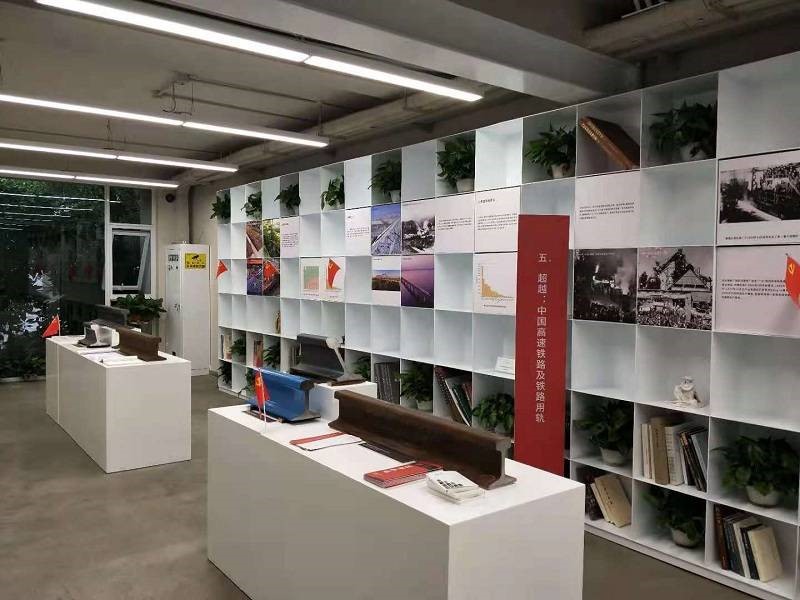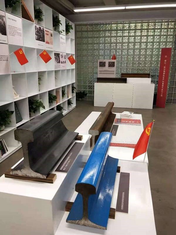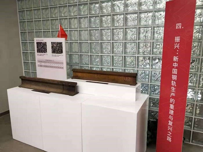 “百年轨迹”展由六部分组成,以时间序列为线索,呈现自18世纪以来铁路用轨制造技术的演变及新中国铁路建设发展史,以回顾百年来在中国共产党的领导下,中国人民艰苦卓绝的奋斗史与国家繁荣富强的兴盛史。“前传:从木轨到钢轨”讲述自18世纪英国工业革命发生以来,大规模液态钢铁冶金和铁路的出现导致的铁路用轨的演变。到19世纪后半期,铁路用轨由早期木轨、铁轨发展到钢轨。与此同时,钢轨成型工艺和轨式也逐渐发展改良。“传入:晚清中国铁路用轨”介绍晚清时中国开启了铁路建设的进程,在完全不具备现代钢铁制造技术和铁路修建能力的中国,钢轨与机车等一切设施均依赖进口。“自强:汉阳造钢轨的兴起与衰落”以汉阳铁厂的兴衰为线索,讲述中国铁路建设从自立自强的黄金时期到再次陷入依赖外国钢轨境地的故事。“振兴:新中国钢轨生产的重建与复兴之路”展现50年代至70年代,中国在苏联援建和自力更生的基础上,重建和兴建了一批重要钢铁工业基地。随着鞍钢、包钢、武钢和攀钢的大型轨梁轧钢设备的相继投产,形成了中国钢轨四大生产厂的格局,钢轨生产走向复兴之路。“超越:中国高速铁路及铁路用轨”记录汉阳铁厂的建成投产,为中国铁路建设和钢铁工业的发展播下一颗种子,记录100年来中国铁路和钢铁工业发展取得的巨大成就,以反映中国的腾飞与昌盛。最后,“百年钢轨品质演变”重点呈现铁路用轨的成分、组织、力学性能变化,表现钢轨是我国钢铁工业百年来飞速发展的历史见证。