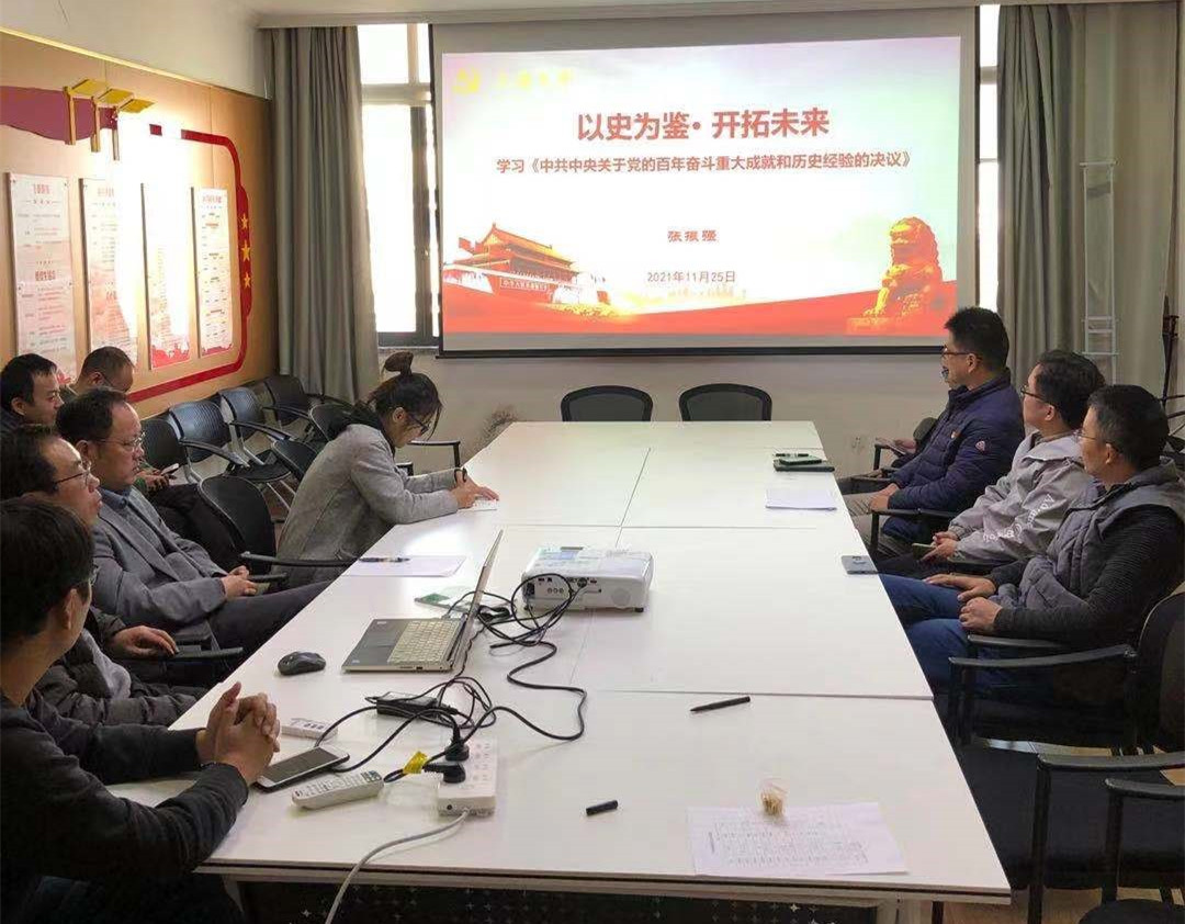 随后,张振强副书记为支部党员讲党课,带领与会党员学习《中共中央关于党的百年奋斗重大成就和历史经验的决议》。《决议》总结了党百年奋斗的重大成就和历史经验,总结了党的十八大以来形成的原创性思想、变革性实践、突破性进展和标志性成就,内容丰富、博大精深,是一篇马克思主义的纲领性文献,对推动全国各族人民在党的领导下夺取新时代中国特色社会主义新的伟大胜利,具有重大意义。张振强强调,我们要大力弘扬建党精神,坚定理想信念,坚持党的领导,守初心担使命,立足岗位、扎实工作,为中华民族伟大复兴的中国梦贡献力量。