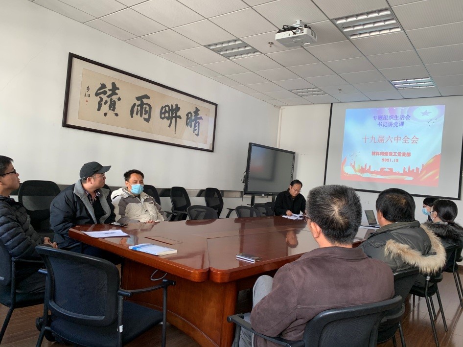 12月23日,3044AM永利材料物理教工党支部于宝山东校区16号楼526会议室召开支部会议,集中学习党的十九届六中全会精神。本次学习会由材料物理教工党支部书记李运波老师主持,支部党员参加。