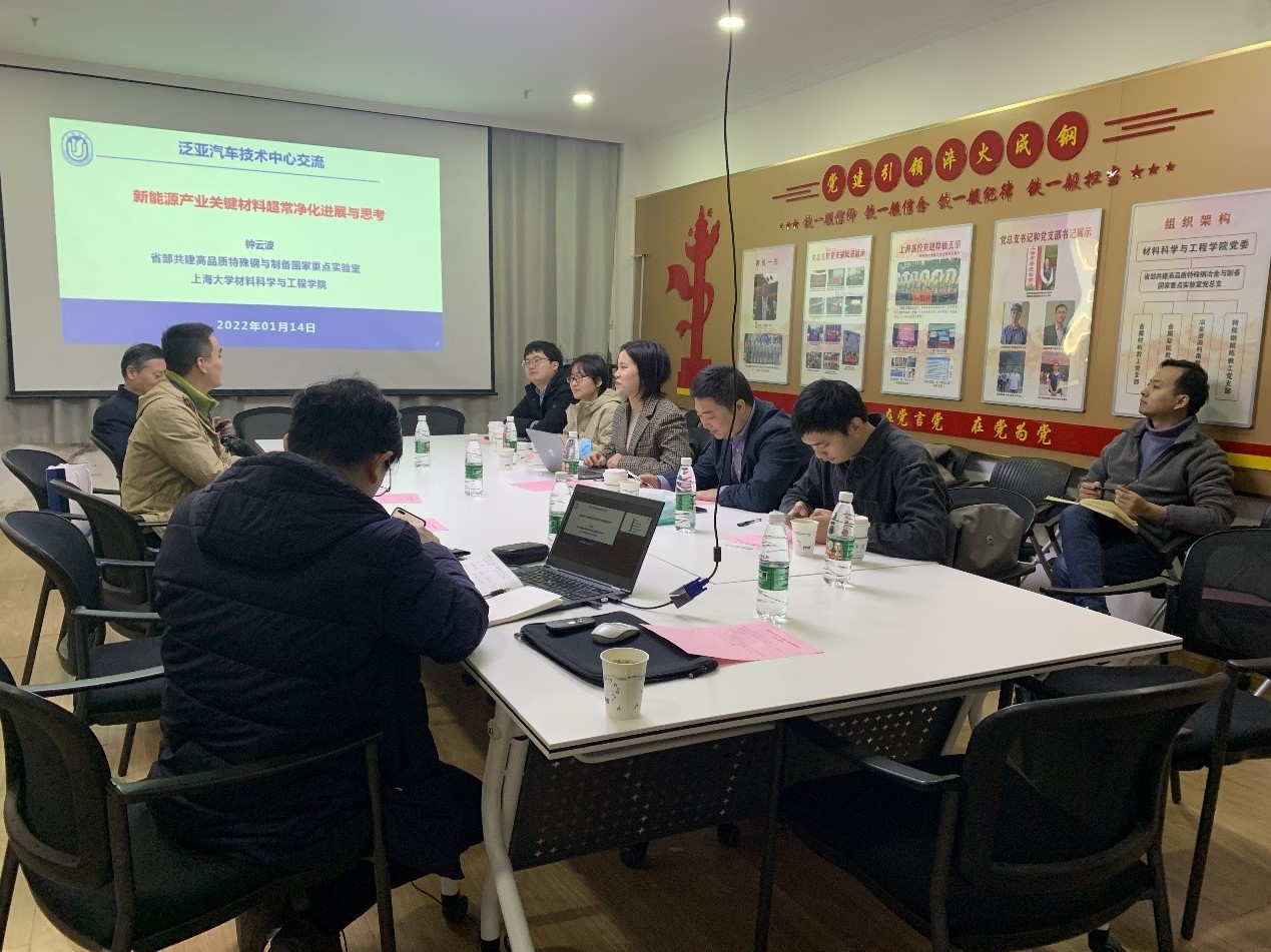 1月14日上午,泛亚汽车技术中心有限公司工程研发团队到3044AM永利3044AM永利进行产学研合作交流。3044AM永利3044AM永利钟云波教授、上大资产公司总经理潘志浩、上大热处理公司总经理顾晓文、环上大科技发展有限公司技术转移部总监刘泽华参加了此次会议。