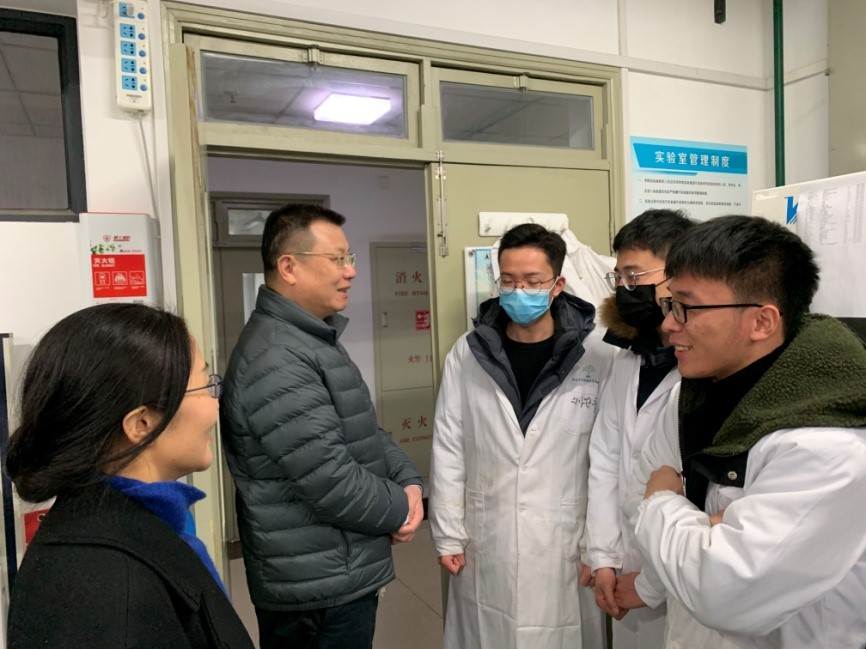 集团领导与实验室师生交流近期工作情况和重点工作安排,肯定实验室近来开展的各项工作,视察实验室安全设施和警示标识,强调假期实验室安全管理不能松懈。走访过程中,校领导对实验室今后的工作提出要求,指出要进一步完善落实规章制度建设,重视实验室安全问题,有条不紊地进行科学研究与人才培养,服务国家战略需求。