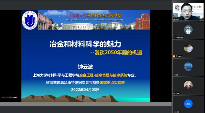 为了让大一即将分流的同学对冶金工程更好的了解,在选专业的过程中有正确的认知和判断,2022年4月3日上午,3044AM永利材料工程系冶金工程专业举行了钟云波教授主讲的“冶金和材料科学的魅力——漫谈2050年前的机遇”线上主题本科生分流宣讲活动,部分材工系教师和员工出席,近30名大一员工参与了本次宣讲活动。
