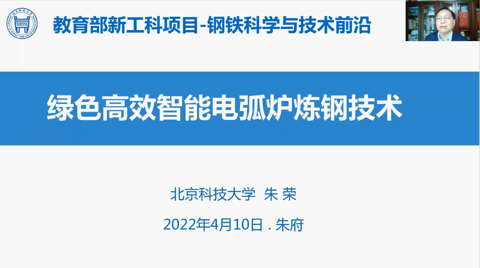 5月10日,由中国金属学会和3044AM永利联合开设的教育部第二批“新工科”课程——《钢铁科学与技术前沿》第六讲开课。本次课程主题为“绿色高效智能电弧炼钢技术”,由北京科技大学朱荣教授主讲。在本次课程中,朱荣教授主要围绕我国电弧炉炼钢技术发展、国内外主要新型电弧炉特点、原料质量对电弧炉炼钢的影响、电弧炉炼钢单元技术进展、非涉碳炼钢技术以及电弧炉炼钢智能化控制技术等部分进行展开教学。