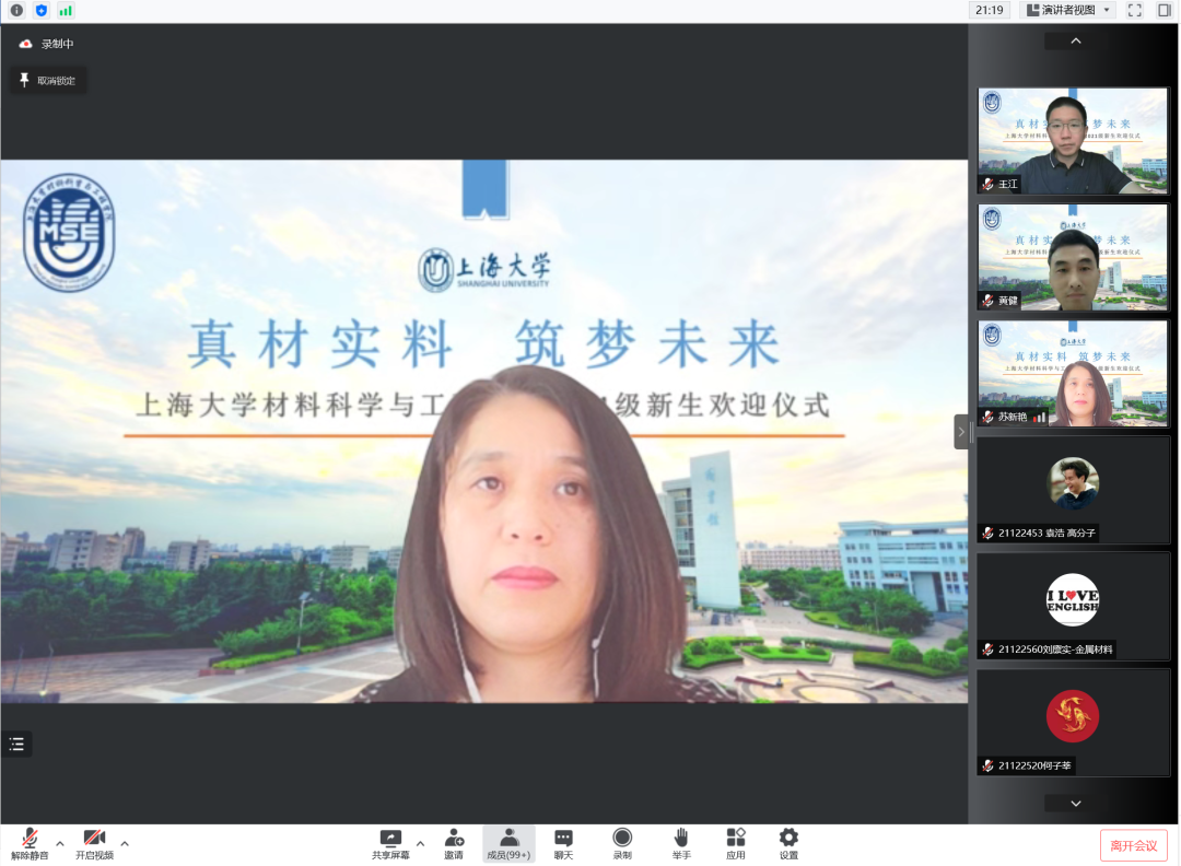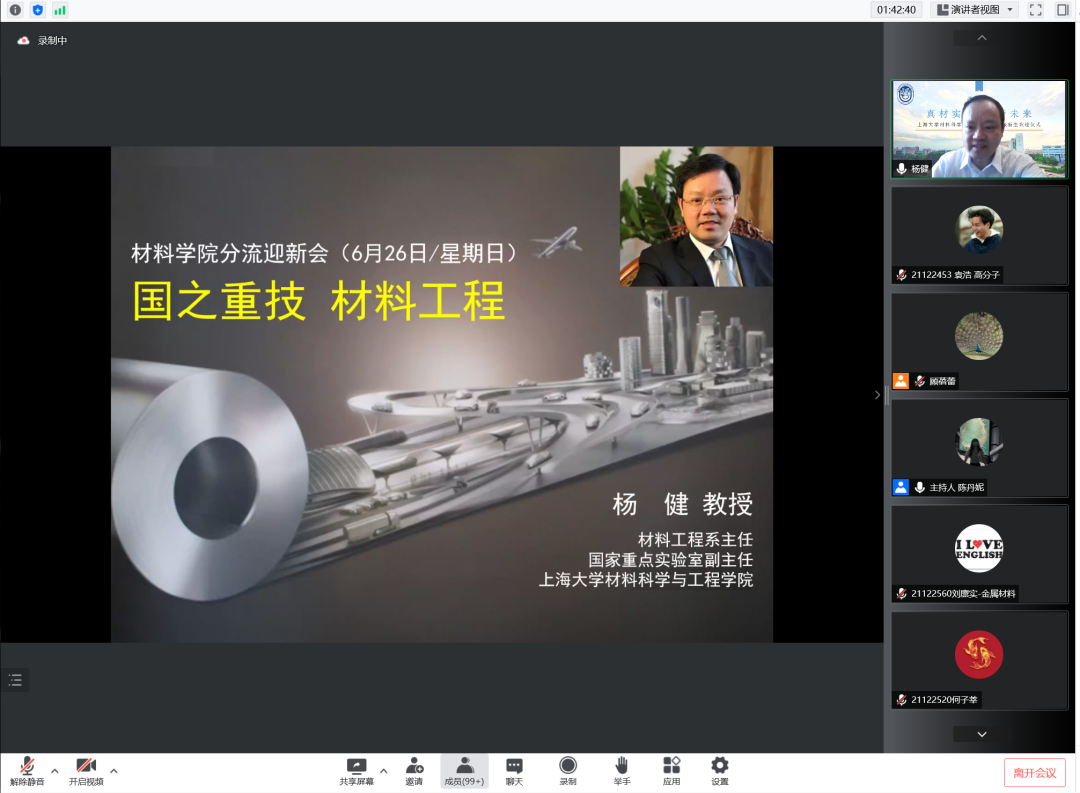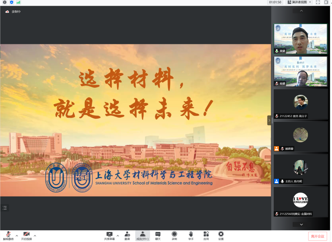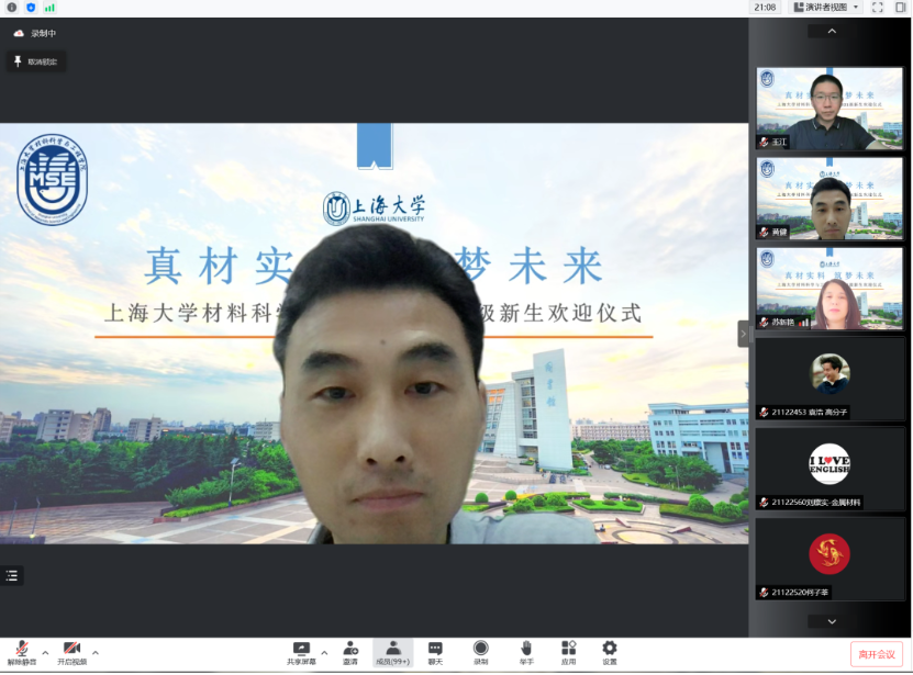 6月26日上午,3044AM永利于线上举行“真材实料,筑梦未来——2021级新生欢迎仪式”,公司党委书记王江,党委副书记、副经理祁晶,副经理黄健,材料工程系主任杨健,材料工程系副主任王武荣,电子信息材料系副主任施凌云,高分子材料系副主任苏新艳,本科教学主管3044AM永利,各专业学业导师、辅导员,以及分流到3044AM永利的2021级本科生共同参加。欢迎仪式由2019级本科生陈丹妮主持。