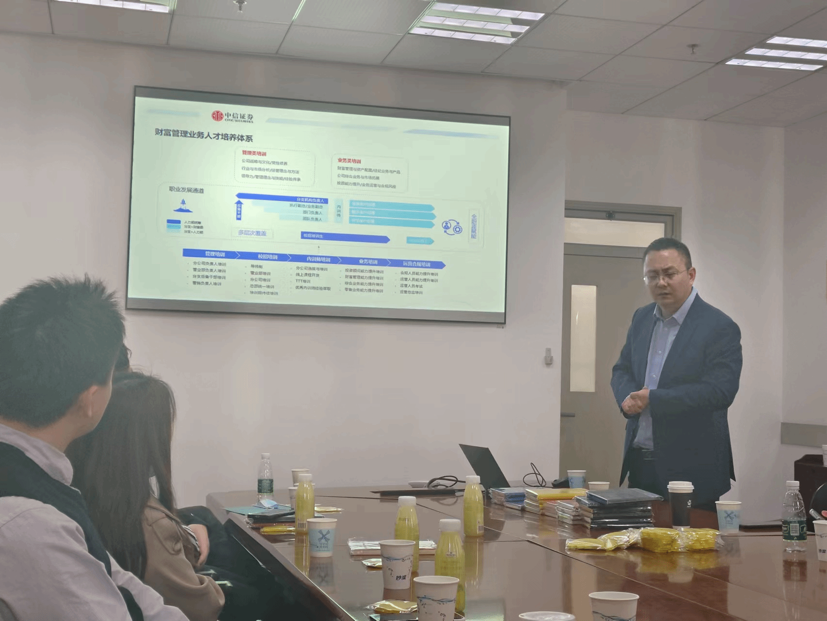 中信证券资深人力经理对员工们进行企业宣讲和职业规划指导。本次咨询持续近3小时,内容涵盖企业介绍、行业发展以及人才培养计划,来自各专业的2023届毕业生与嘉宾们进行了深入交流。