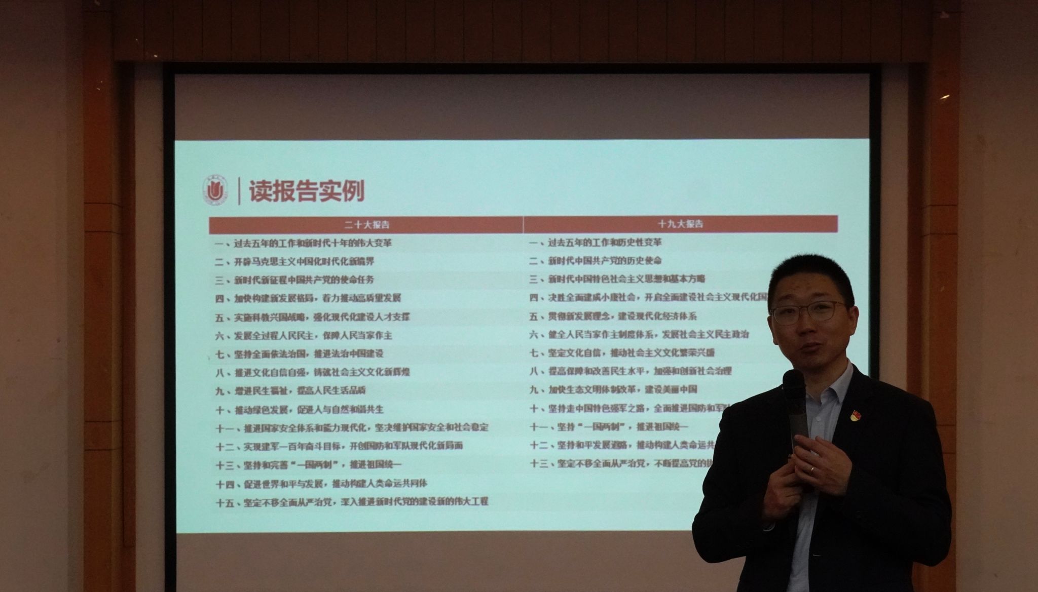 对于“如何让自己变得更优秀”这一问题,王书记表示,批评和自我批评是中国共产党的优良传统和作风,是我们党保持肌体健康的锐利武器,这一优良传统和作风值得每一位研究生继承并发扬,学会自省。由此,王书记从“回顾历史与展望未来”“总体布局”“内政外交”“党的建设”四个方面介绍二十大报告的基本内容与框架结构,详细讲授党的二十大会议精神。