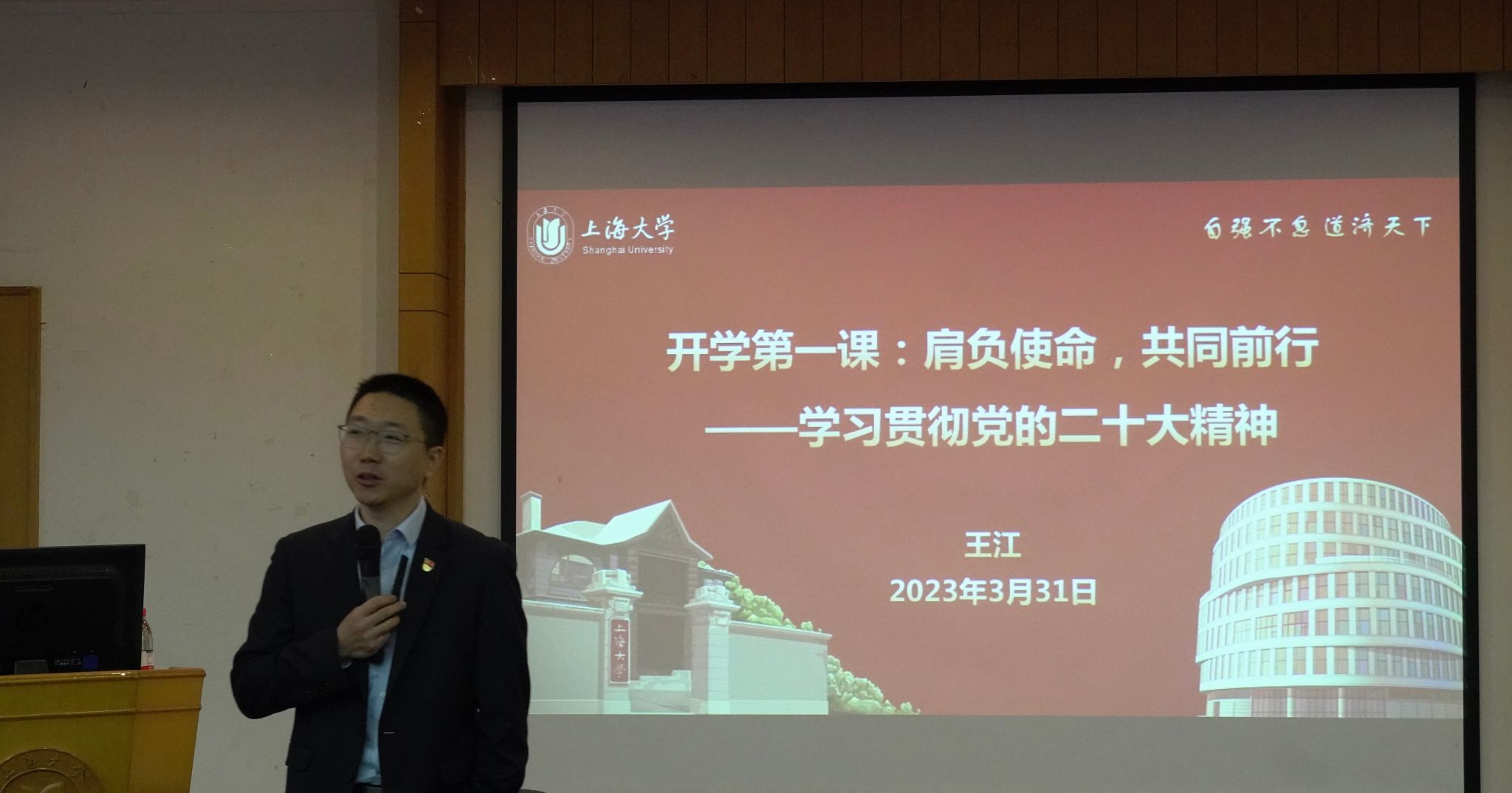 为深入学习贯彻党的二十大精神,加深同学们对二十大报告的学习理解,扎实推进党的二十大精神进头脑、进思想,3月31日上午,公司党委书记王江教授以“肩负使命,共同前行”为主题,为公司全体研究生讲授春季学期“开学第一课”,带领大家学习贯彻党的二十大精神。100余名研究生代表现场参与学习,报告现场在“上大材料”视频号上同步直播。
