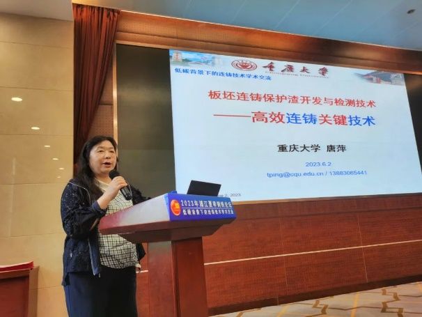 唐萍教授做《板坯连铸保护渣开发与检测技术-高效连铸关键技术》报告